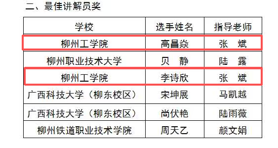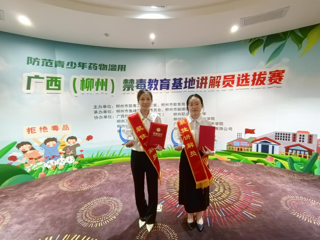 9月19日上午,广西禁毒教育基地讲解员选拔赛在柳州市禁毒教育基地内举行,来自柳州市7所高校的选手同台竞技,用专业讲解传递禁毒力量。经过激烈角逐,由我校保卫处与经济管理学院选拔,张斌老师指导的高昌焱、李诗欣两名同学荣获“最佳讲解员”荣誉称号。