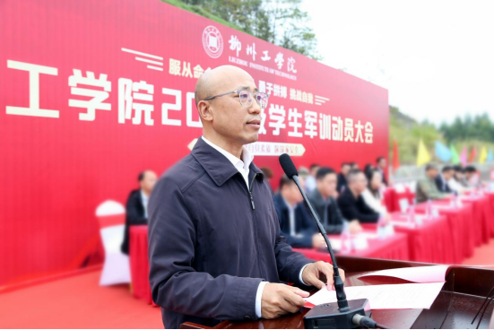 黄龙在讲话中强调了军事训练作为大学生履行兵役义务、接受国防教育的重要性,并对全体参训学生和教官提出具体要求:一要提高认识、端正态度;二要严守纪律、听从指挥;三要科学组训、注重实效;四要严密组织、确保安全。他鼓励同学们以军人的标准严格要求自己,磨炼意志,以优异的训练成果展现柳州工学院学子的风采。