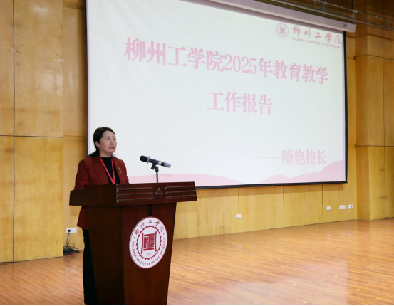 会上,隋艳作柳州工学院2025年教育教学工作报告,总结了“十四五”期间学校在思政育人、专业建设、产教融合、师资队伍等方面取得的显著成绩,深刻剖析了当前存在的主要问题、机遇与挑战,并明确了“十五五”期间主要建设思路。她指出,广西和柳州的发展蓝图,就是柳州工学院的行动指南。面向2030年,柳州工学院将坚定不移以建设特色鲜明的区域高水平应用型大学为目标,全面融入广西高等教育强区建设和柳州加快推进新型工业化、发展新质生产力、建设制造强市发展大局,坚定不移走产教融合、特色发展之路。她强调,站在“十五五”新征程的起点,全校上下要以更加坚定的信念、更加昂扬的斗志、更加务实的作风,以“功成不必在我”的精神境界和“功成必定有我”的历史担当,凝心聚力、砥砺奋进,助力学校实现高质量内涵式发展。