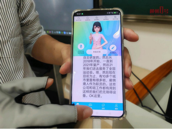 广东省阳江市的95后市民刘女士是手语手套的使用者之一。曾经她因害怕人工耳蜗手术带来的术中风险和术后伤痛,选择了手语手套。使用手语手套2年,刘女士最大的感受是,以前通过打手语、打字等方式与身边老人沟通,打字速度很慢,遇到老人不识字时,还无法沟通,心情很懊恼。如今借助手语手套,打手语能实时翻译成文字、转为语音,与人沟通交流很顺畅。