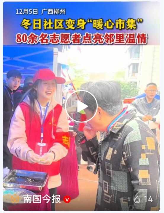 2025年12月5日是第40个国际志愿者日,柳州工学院80多名学生志愿者与龙象社区携手举办的“汇聚志愿力量 共建美好社会”主题志愿服务活动在此温情启幕,受《柳州日报》《南国今报》关注报道。