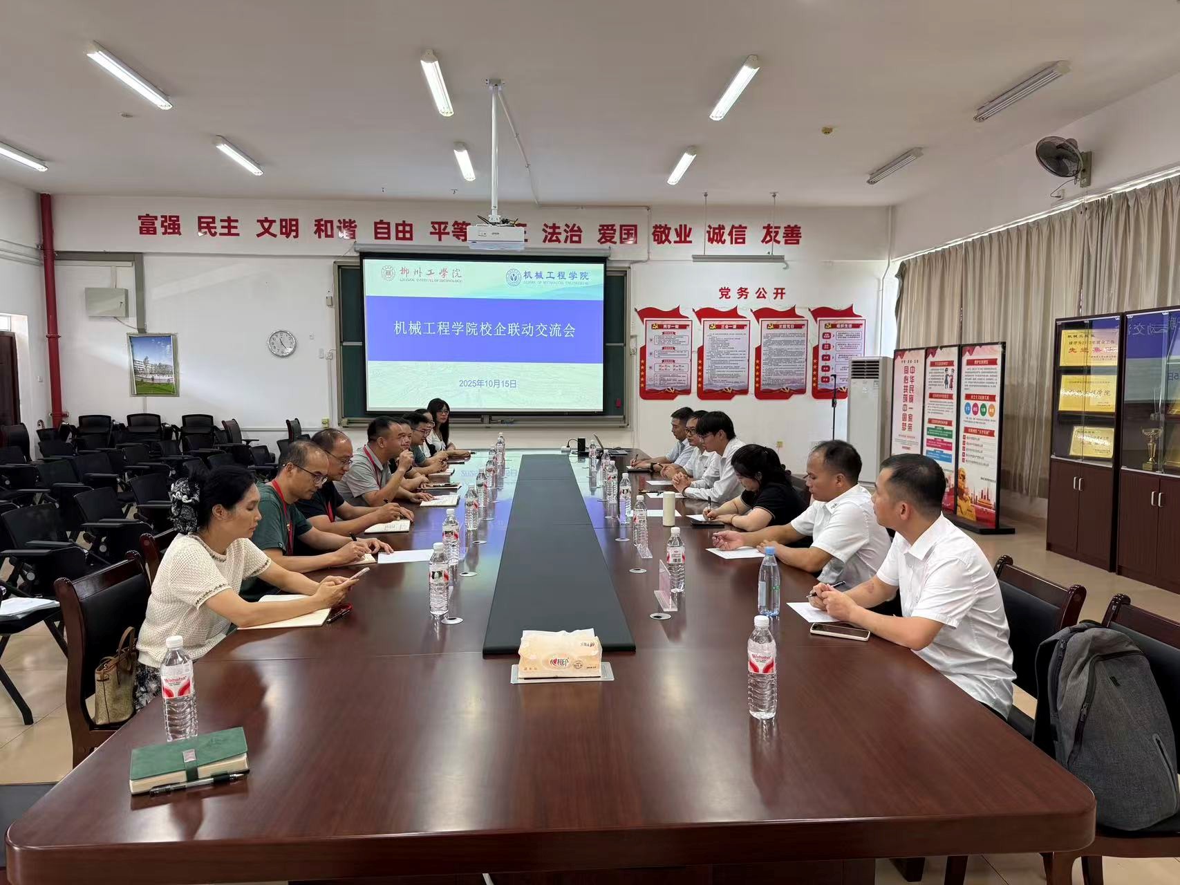 10月15日,机械工程学院在第一实训楼316会议室开展校企联动交流会。广东海大集团有限公司、广西骅桥新材料有限公司、佛山市欧安智能科技有限公司、赛克瑞浦动力电池系统有限公司、双胞胎股份有限公司等知名企业代表与学院领导、专业教师齐聚一堂,围绕人才培养、校企合作、实习就业等议题展开深入探讨,共绘协同育人新蓝图。