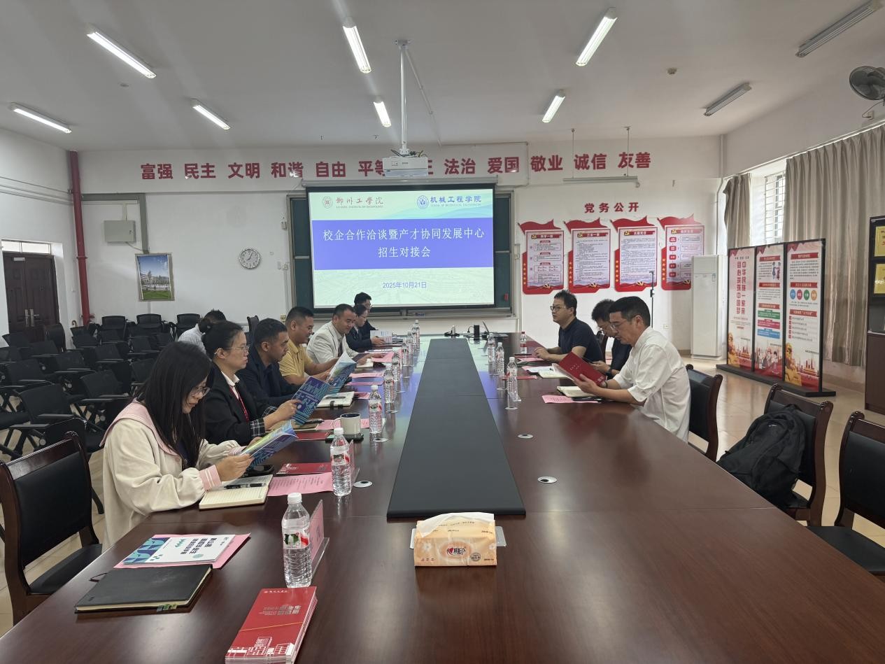 宁波市象山县人力资源和社会保障局一行由人才开发和市场科副科长俞斌峰带队,宁波智潮模具产才协同发展中心负责人陈王海,浙江金潮教育科技有限公司校企合作业务总监杨舜源等企业代表到校参会,柳州工学院招生就业处处长李嘉迪、信息科学与工程学院院长王一波、机械工程学院领导班子及教师代表共同参会,为校地企合作与产才研融合发展谋篇布局。会议由机械工程学院院长张宏献主持。
