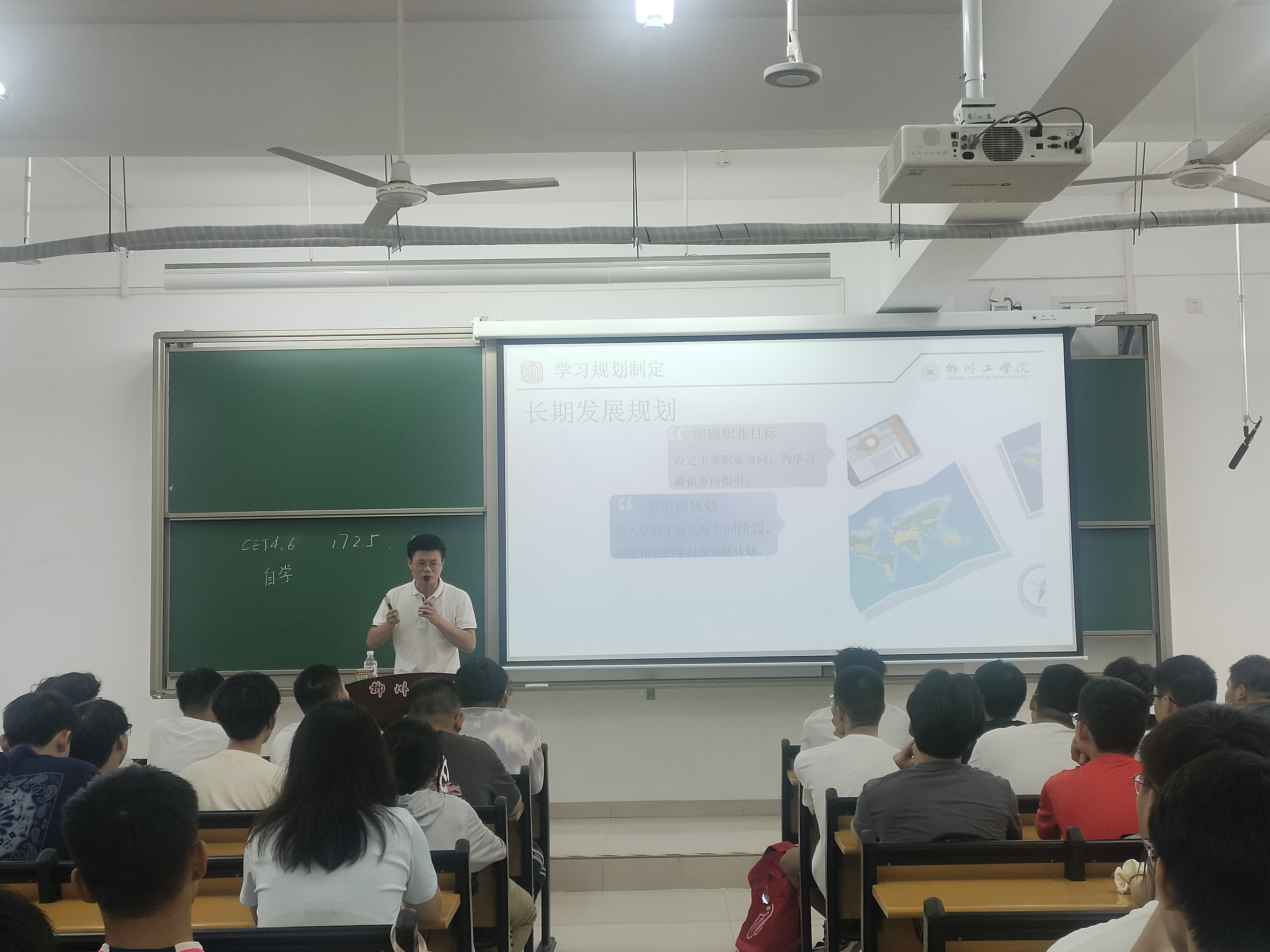 在学风建设动员会上,汽车工程学院党总支书记张琨介绍了学校相关规定,强调了学风建设的重要性,鼓励新同学们积极投入新阶段的学习,尽快适应大学学习的方式和节奏,形成良好的班风学风。智能车辆工程教研室主任甘博,车辆工程专业负责人覃华桥,新能源汽车工程专业负责人赖凡三位老师分别面向三个专业的新同学系统地讲授了专业导论,帮助同学们对专业形成初步认知。心理健康教育讲座中,辅导员韦石华向同学们介绍了心理健康的重要性。她指出,应科学看待心理健康问题,以积极的态度应对情绪问题,必要时可向老师和专业人士寻求帮助。在资助政策宣讲和本科教学评估宣讲中,辅导员李敏芳介绍了奖助勤贷的相关政策和本科教学评估工作,鼓励同学们规划好大学生活,积极参与校园活动、支持学校工作。在校情校史教育讲座中,辅导员汪佳睿为同学们介绍了学校的历史和情况,帮助同学们对学校形成更好地了解。