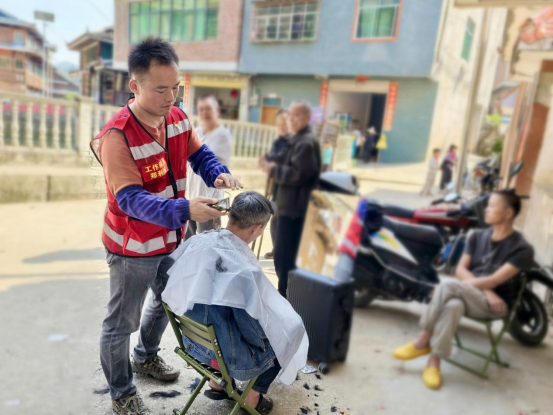 活动现场,驻村工作队队员化身“理发师”,在滚良村乡村夜校、鼓楼等地旁支起简易工具,耐心为每位老人修剪头发。老人们看着镜中清爽的发型,脸上露出满意笑容。队员郑利斌一边熟练操作工具,一边与老人拉家常、问近况,现场氛围温馨融洽。
