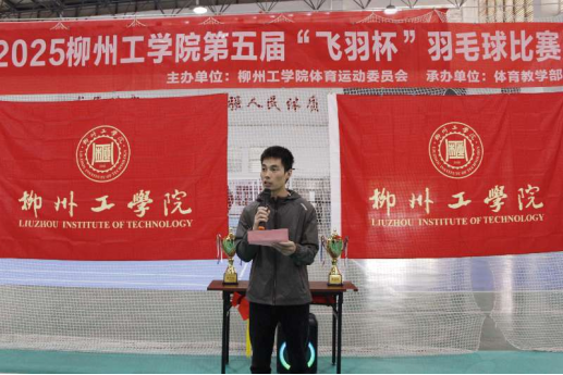 11月2日,由校体育运动委员会主办,体育教学部与校团委联合承办的柳州工学院“飞羽杯”羽毛球比赛在南校区室内羽毛球场举行。体育教学部副主任(主持工作)梁健、综合教研室主任贠福鑫参加开幕式并致辞。