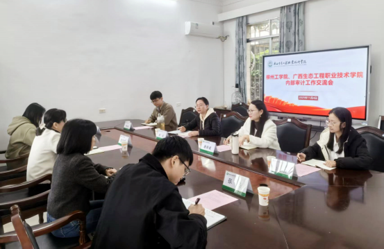 座谈会上,柳州职业技术大学审计处副处长(主持工作)周继春、广西生态工程职业技术学院审计处处长张宁辉、柳州铁道职业技术学院审计处处长熊辉、柳州城市职业学院审计处处长沈虹对我校到访表示热烈欢迎,并系统分享了各校在内部审计制度建设、业务实施与创新方面的实践经验。段东说明了此次交流的背景与目的,并介绍了我校内部审计工作的现状与挑战。与会人员重点围绕审计队伍建设、审计业务类型、审计全过程管理与质量控制等议题,进行了深入探讨和务实交流。