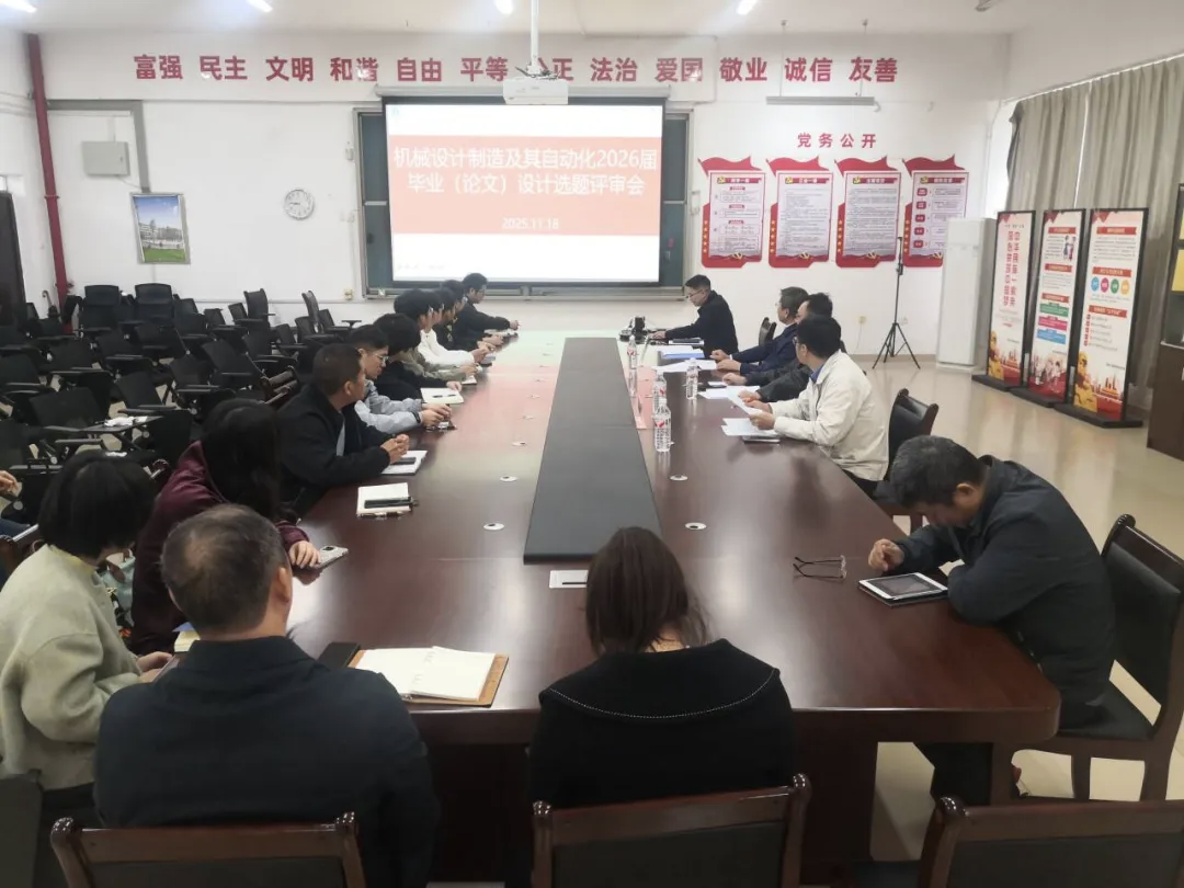 11月18日,机械工程学院机械设计制造及其自动化教研室与工业机器人教研室成功召开机械设计制造及其自动化专业2026届毕业设计(论文)选题质量评审专题研讨会。本次会议特邀广西科技大学教授尹辉俊、柳州五菱汽车科技有限公司主任工程师黄小林、东风柳州汽车有限公司首席师张锁军组成评审组,与教研室主任李福送、王文军及全体毕业设计指导教师共同参与评审研讨。此次评审会不仅是对毕业设计选题的专业审议,更是一次深化产教融合、推进校企协同育人的重要实践。
