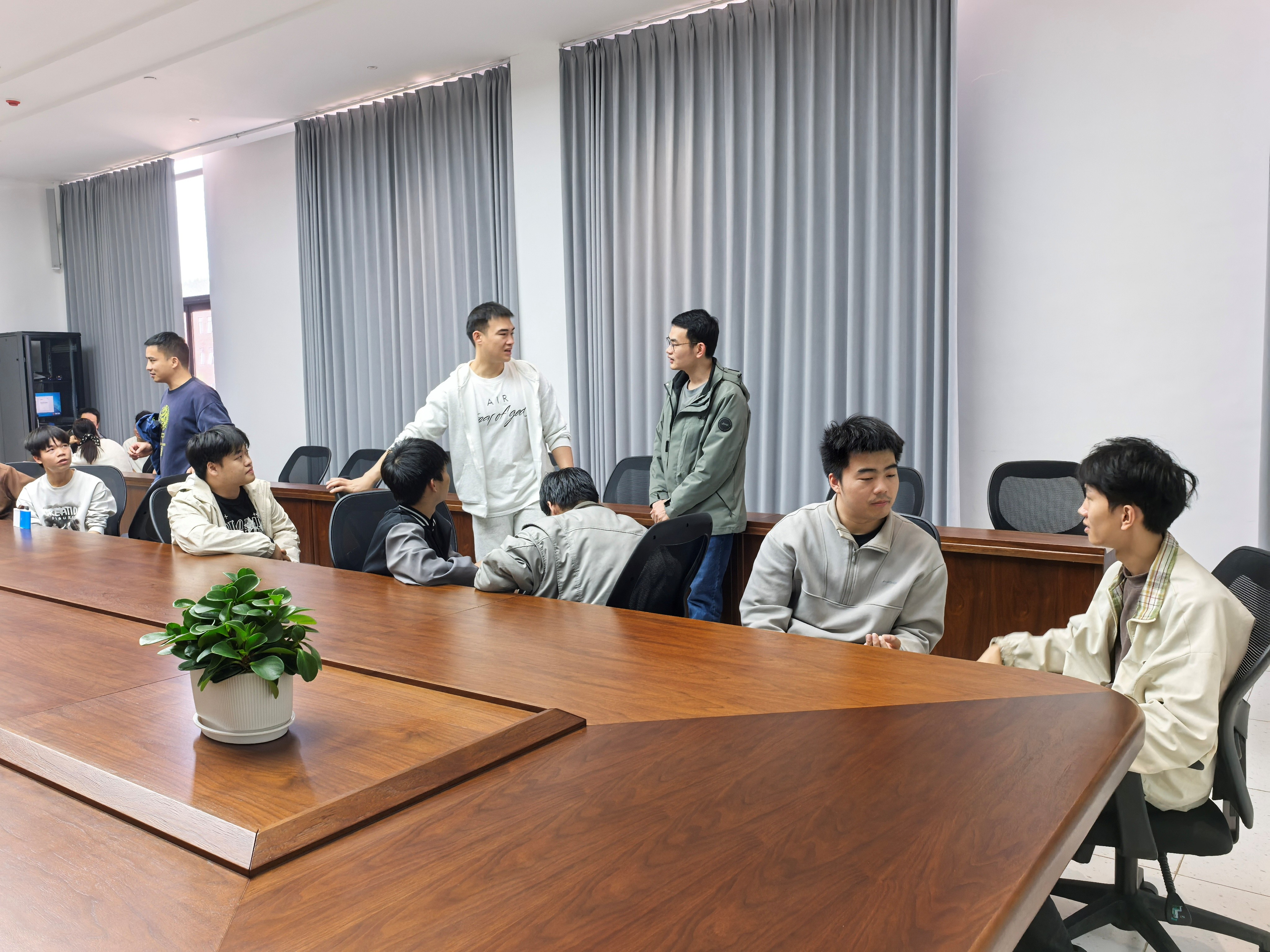 交流会以“分组研讨+集中答疑”形式展开,覆盖机械设计制造及自动化、机械工程、材料成型及控制工程专业的十余名应届毕业生。企业工程师与校内导师组成联合指导组,针对学生将工程实践与毕业设计结合中存在的共性问题与个性难点逐一“开方”。例如:工艺部的同学计划将岗位中常见的电芯铝片、铜片卷包机结构设计作为毕业设计课题,针对性提高卷包和上下料效率开展进一步研究;设备部的同学从电芯码垛装置得到启发,想从结构优化的角度,解决码垛不同规格电芯的精准度;Pack包装部的同学根据不同规格的电芯,将机械臂的末端执行抓手设计为目标,优化现有的抓取方式,提高效率。导师们分别对各自的学生在工程实践中遇到的问题给出了诸多建设性意见和针对性指导,为学生明确毕业设计的研究目标与研究内容。