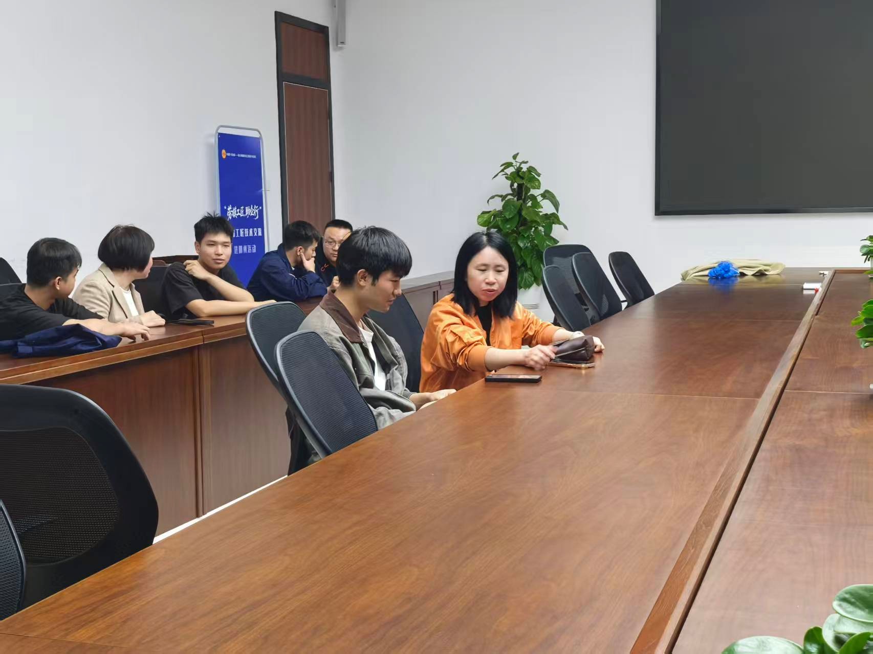 随后学生对自己的工作岗位作简要介绍:有的在设备部从事自动化装配线设备参数调试和故障排查,有的在质检部监测电池循环测试数据,还有的在品质部参与电池工序的质量检测跟随工程师参与产线故障排查。看到学生们熟练运用订单班所学的专业知识介绍自己的岗位相关工作与解决的实际问题,指导教师纷纷表示:“这样的实践场景比课堂更鲜活、更灵动,也更专业,能看到学生成长肉眼可见的提高。”