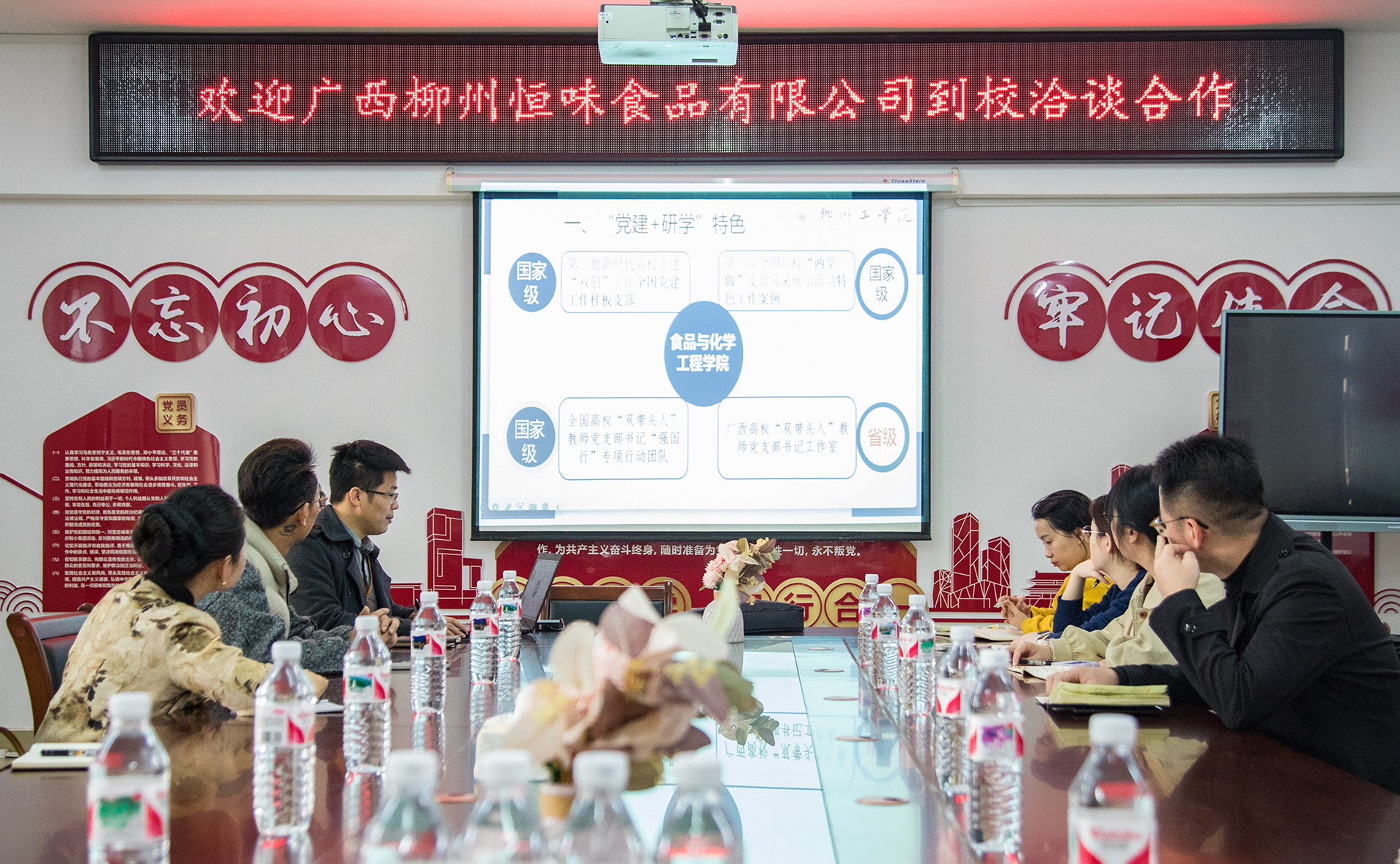 12月16日,广西柳州恒味食品有限公司到访柳州工学院食品与化学工程学院,双方聚焦产学研协同创新、特色食品研发等核心方向开展深度对接洽谈。此次校企互动旨在以精准联动为抓手,为“柳州味道”的品质升级赋能,为地方特色食品产业的拓展延伸注入新动能。