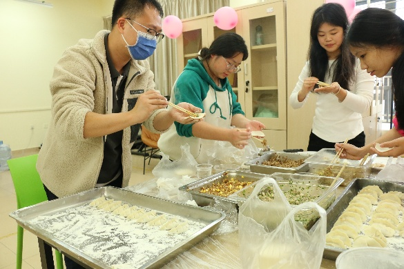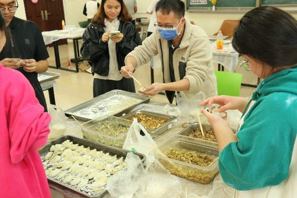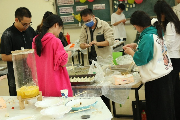 活动伊始,同学们分工明确、默契配合。揉面、擀皮、包馅的过程中,大家相互学习、互帮互助。年轻的面庞上洋溢着笑容,讨论包饺子的技巧,分享各自家乡冬至的文化传统,各自发挥创意,包出了元宝形、月牙形等特色饺子,现场充满了青春活力与欢声笑语。