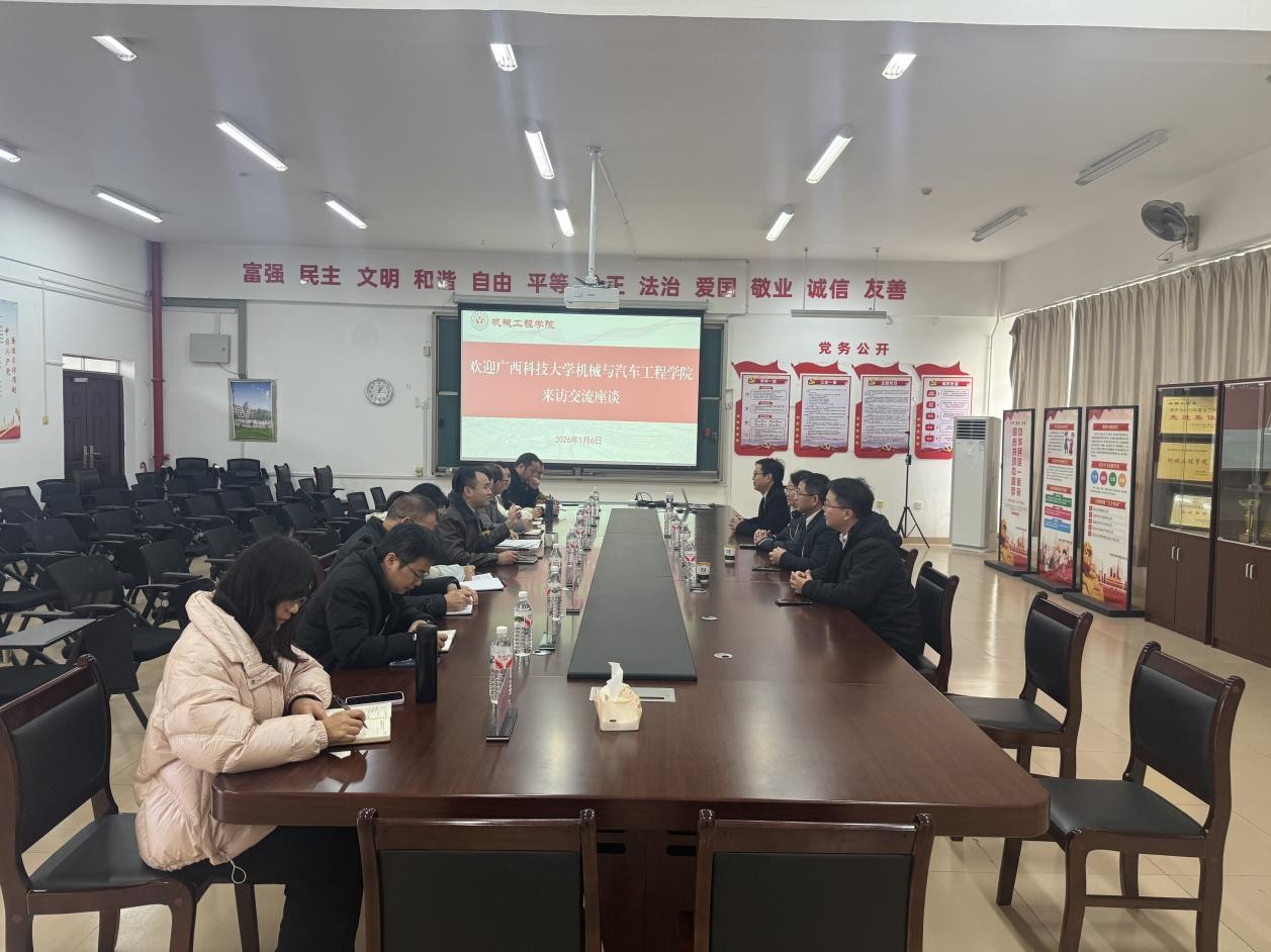 座谈会上,机械工程学院院长张宏献介绍了学院在学科专业建设、师资队伍培养、人才培养等情况。孙有平介绍了广西科技大学机械与汽车学院学科规划、专业建设、科研成果以及2026年工作思路等情况。随后,与会人员就2026年共建工作方向进行了交流,2026年是共建发展的关键时期,双方学院计划从队伍帮带、载体同创等方面开展具体合作。