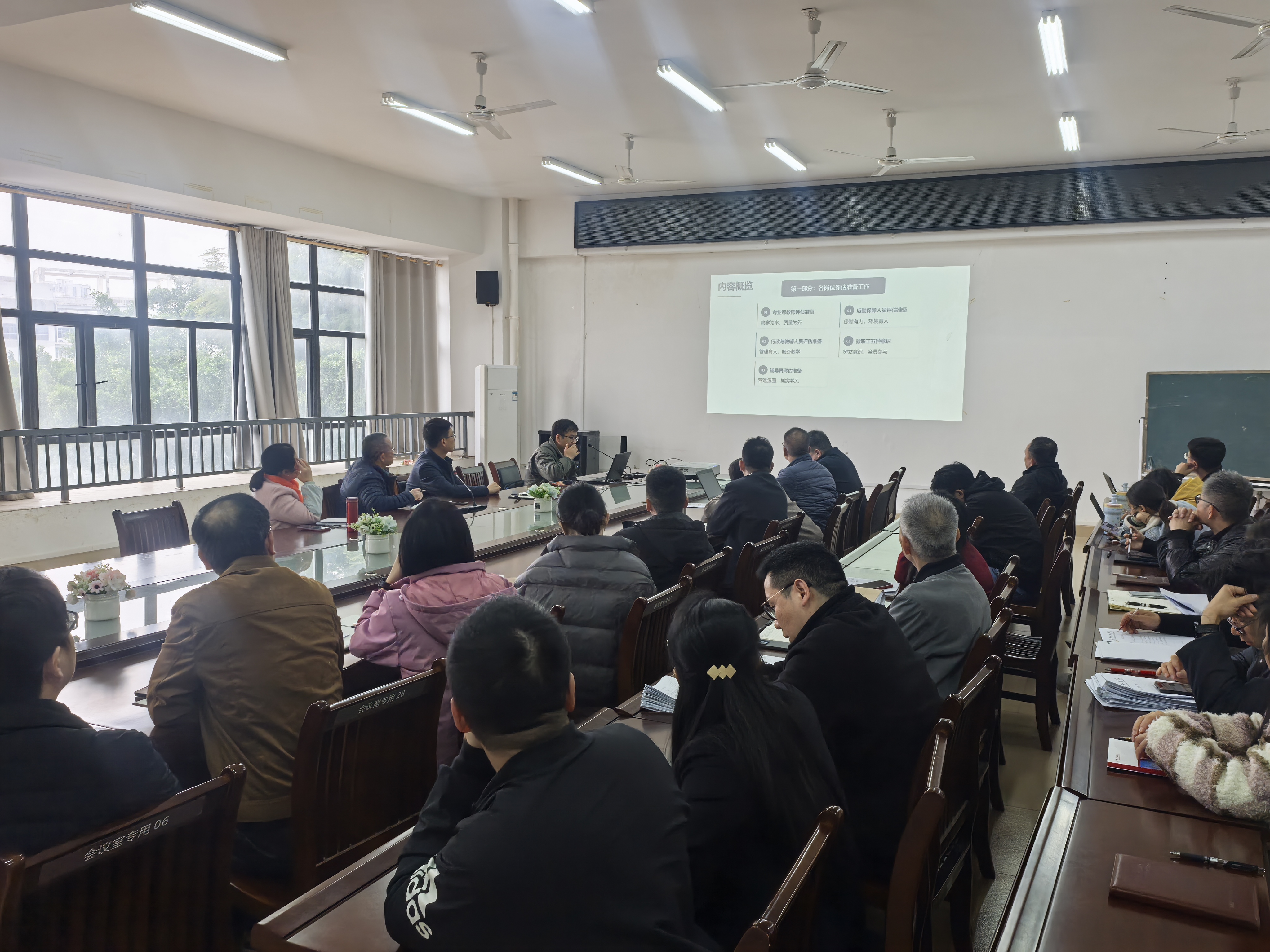 2026年1月16日,汽车工程学院在第三实训楼225会议室开展本科教学合格评估应知应会集体学习会。学习会由汽车工程学院教职工党支部组织,全院教职工共同参加。