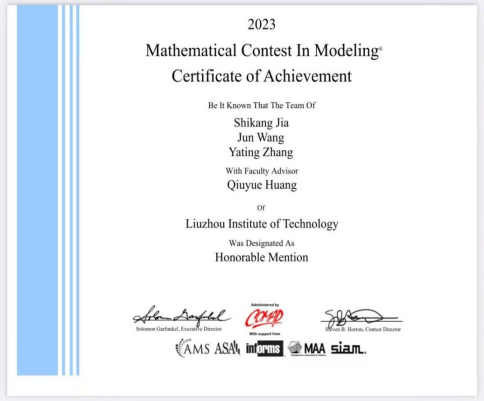 近日,2023年美国大学生数学建模竞赛(MCM/ICM)评审结果正式公布。我校黄秋和老师、张一春老师分别指导的参赛队伍在本次美国大学生数学建模竞赛中均荣获一等奖(Meritorious Winner),黄秋月老师指导的参赛队伍荣获二等奖(Honorable Mention),获奖数量和获奖等级再创新高。
