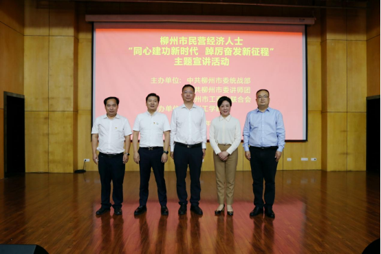 10月20日下午,由市委统战部、市委讲师团、市工商联联合举办的柳州市民营经济人士“同心建功新时代·踔厉奋发新征程”主题宣讲活动在我校南校区学术报告厅举行。市工商联党组成员、副主席、所属商会党委书记刘洪生,市工商联党组成员、秘书长薛峰,市工商联党组成员、市委统战部非公科科长陈雪玲出席活动,我校创业协会、就业促进会以及各学院师生代表近300人参加活动,学校党委委员、党委组织宣传部、统战部部长王拓主持活动。
