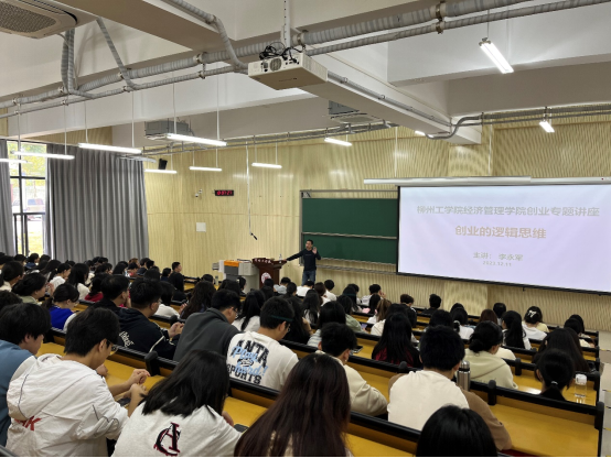 12月11日,经济管理学院人力资源管理教研室在北校区T1-101教室组织开展“创新的逻辑思维”专题讲座,特别邀请了国家科技部火炬中心创业导师、广西军道投资有限公司董事长李永军到场主讲,人力资源管理教研室全体专任教师以及近200名学生参加了本次讲座。