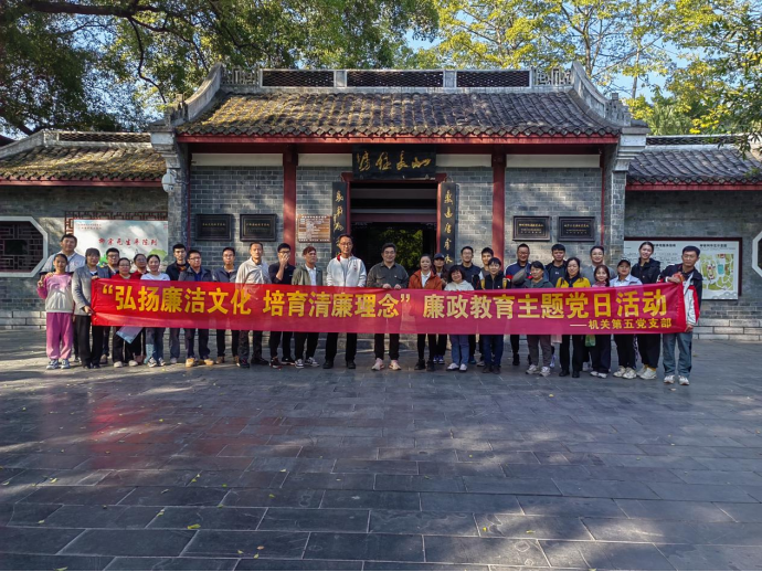 11月22日上午,机关第五党支部组织全体党员同志、入党积极分子、统战对象前往柳侯祠廉政教育基地,开展以“弘扬廉洁文化 培育清廉理念”的廉洁教育主题党日活动。