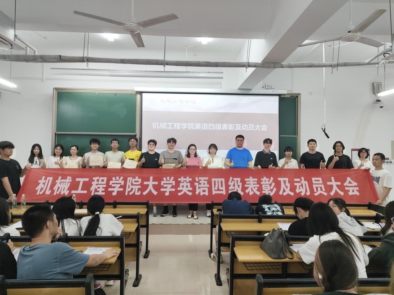 本次大学英语四级表彰和动员大会的召开,不仅表彰了先进,树立了榜样,更激发了全体学生学习英语的热情和信心。机械工程学院将以本科教学工作合格评估为契机,持续深化教学改革,加强学风建设,不断提高人才培养质量,为培养具有国际视野和创新能力的高素质应用型人才而努力奋斗。