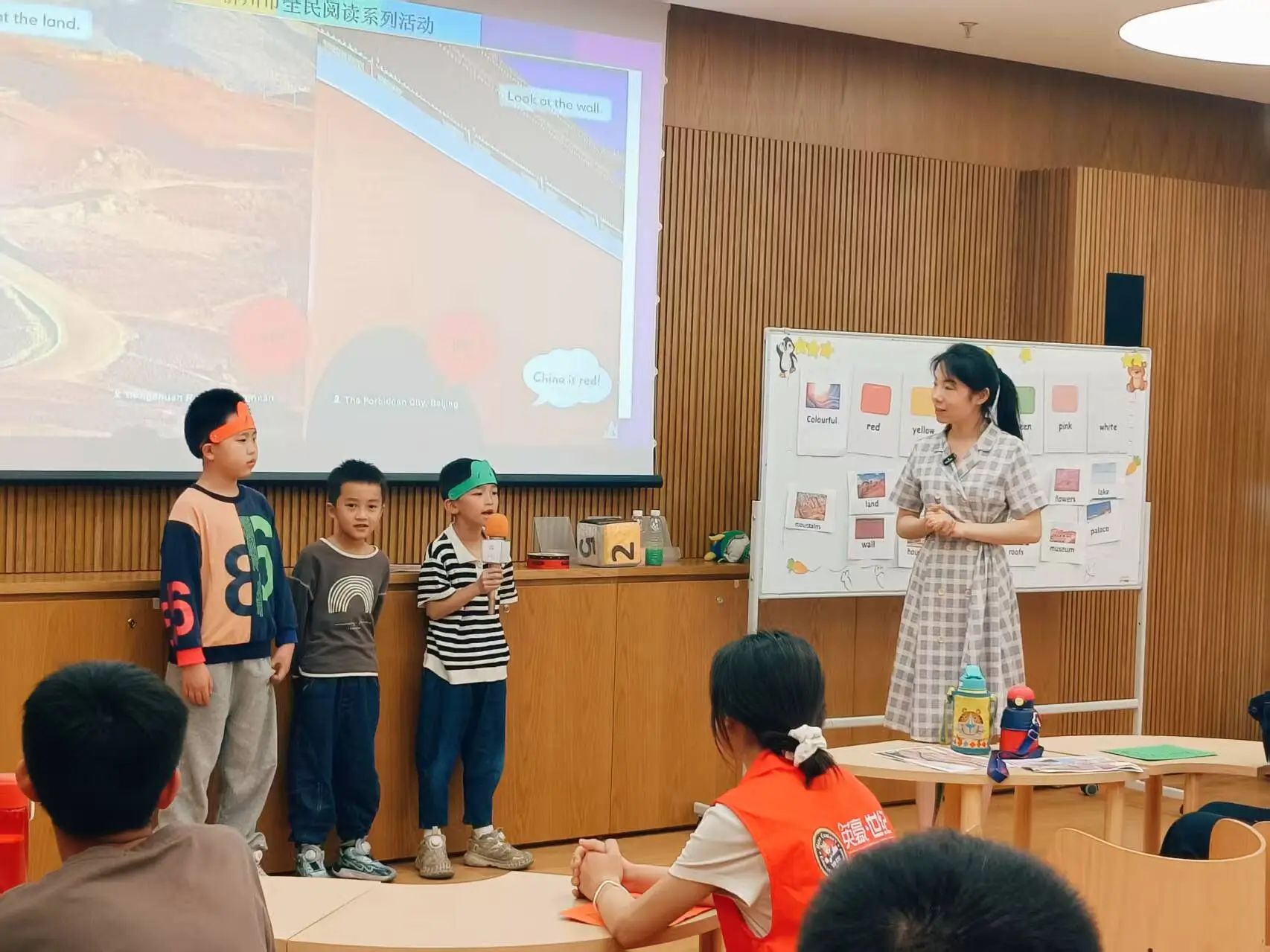 活动尾声,志愿者们引导孩子们有序上台表演,用稚嫩而清晰的声音讲述绘本故事。他们的默默付出为课堂增添了温暖与活力,也让孩子们在轻松的氛围中感受到英语学习的乐趣。