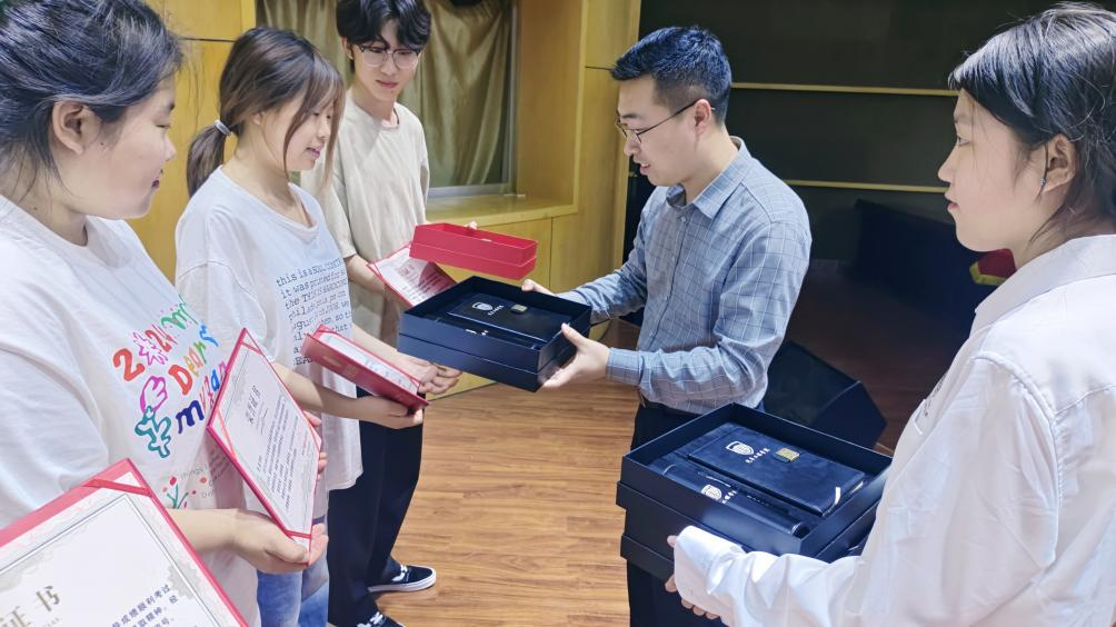 在颁奖表彰环节,许孝忠为2024年12月通过大学英语四级考试的12名同学颁发奖品并授予“大学英语四级考试——进取先锋”荣誉称号。