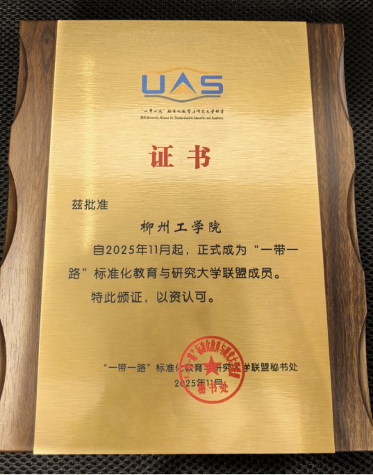 近日,柳州工学院加入“一带一路”标准化教育与研究大学联盟的申请正式获得联盟批准。这标志着我校标准化教育事业迈出关键一步,开启了对标国际、共促标准互联互通的新篇章。