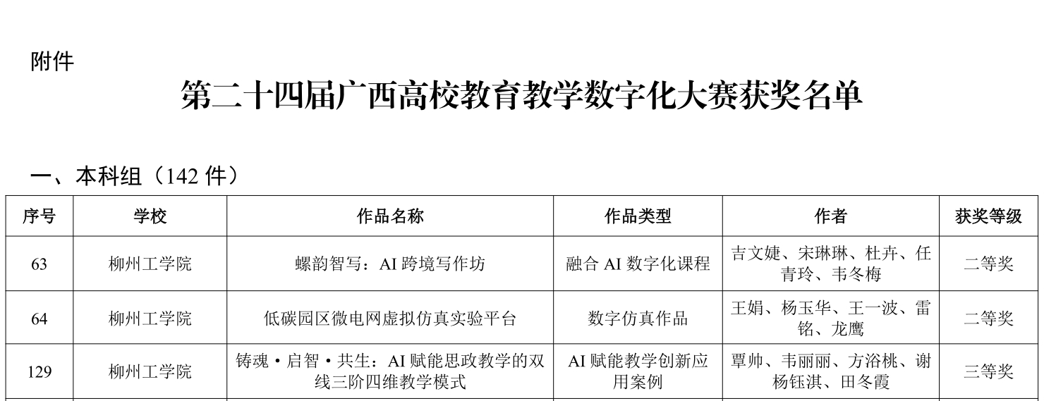 12月23日,自治区教育厅公布第二十四届广西高校教育教学数字化大赛获奖名单,我校参赛作品获得二等奖2项、三等奖1项。