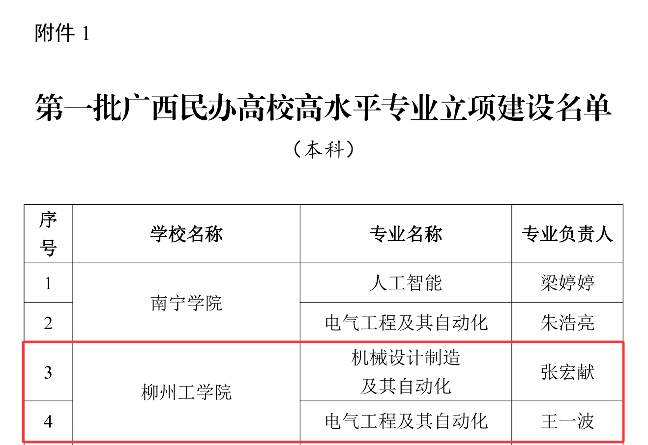 近日,自治区教育厅公布第一批广西民办高校高水平专业建设项目立项名单,我校机械设计制造及其自动化、电气工程及其自动化专业双双入选。这是对我校长期坚持内涵建设与教学改革的高度认可,为2026年学校高质量发展赢得“开门红”。