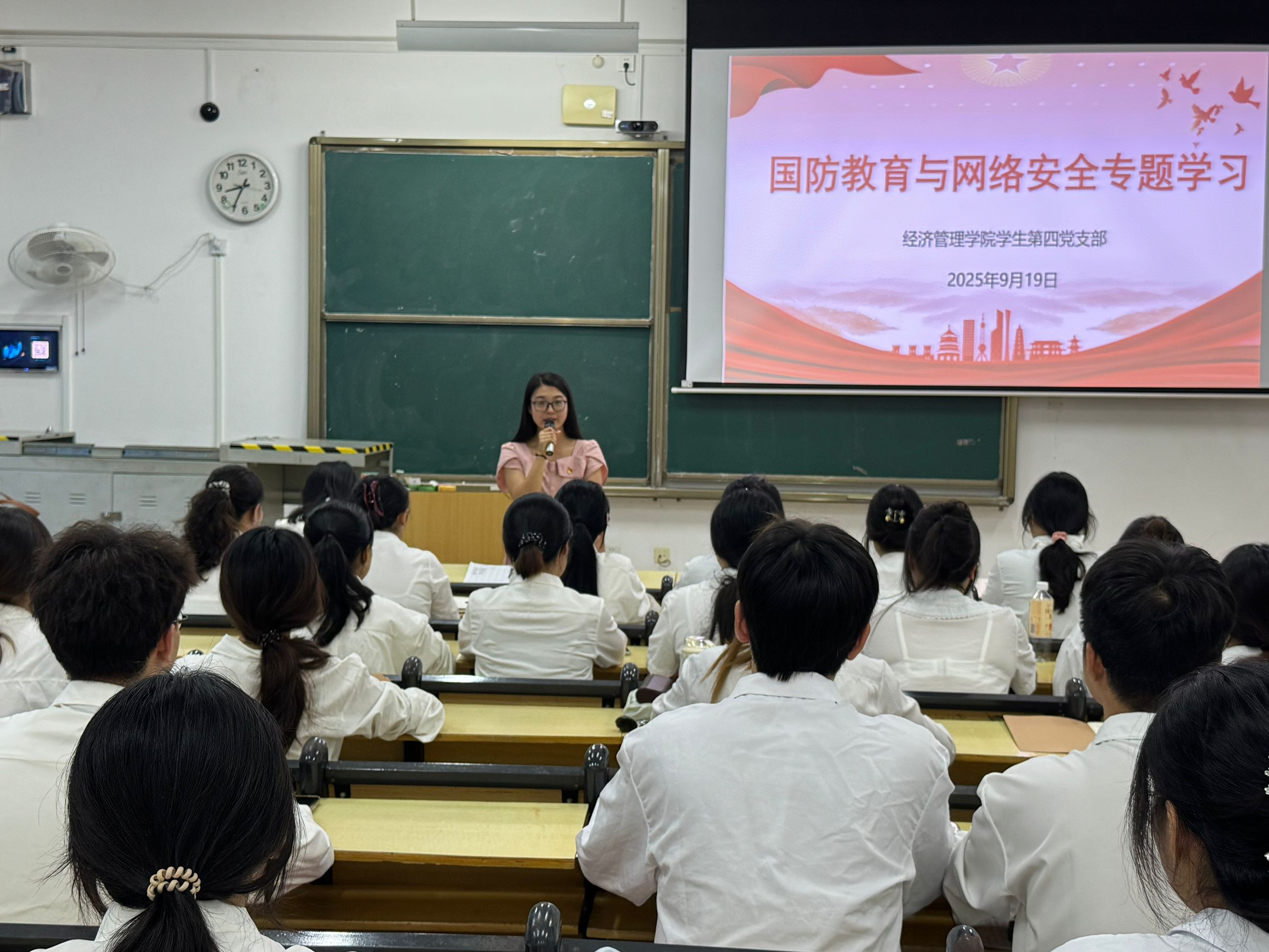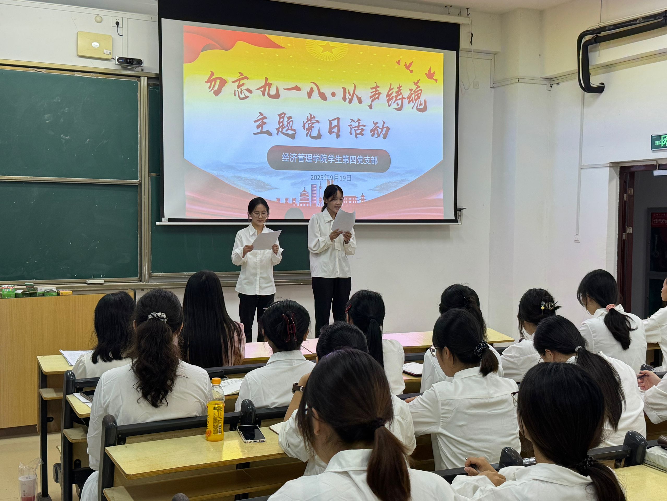 为坚定党员理想信念,凝聚奋进力量,经济管理学院学生第四党支部于9月19日晚在第二教学楼208教室组织开展了“勿忘九一八、以声铸魂”主题党日活动。本次活动由王娜同志主持,支部全体党员及入党积极分子参加。