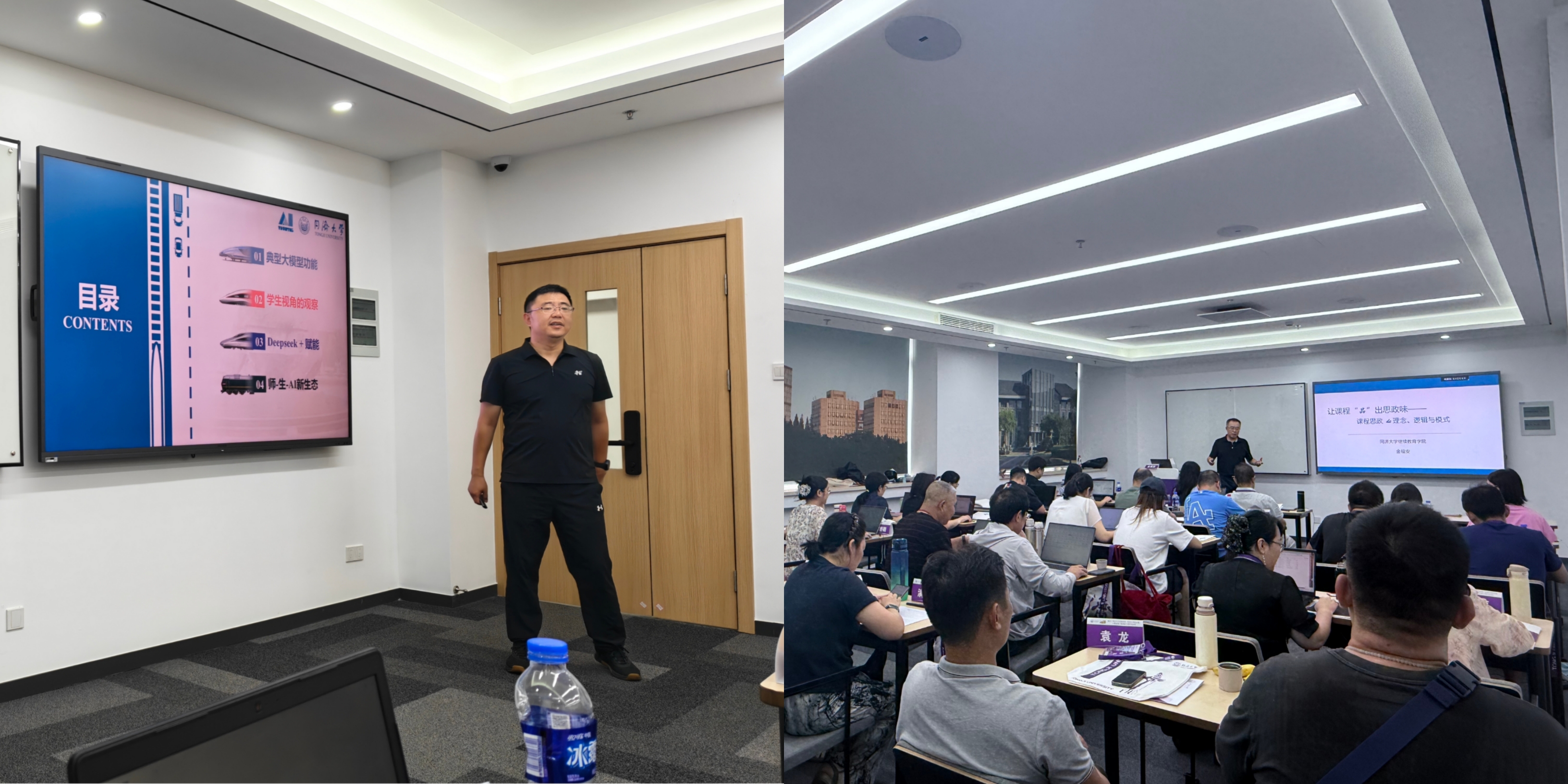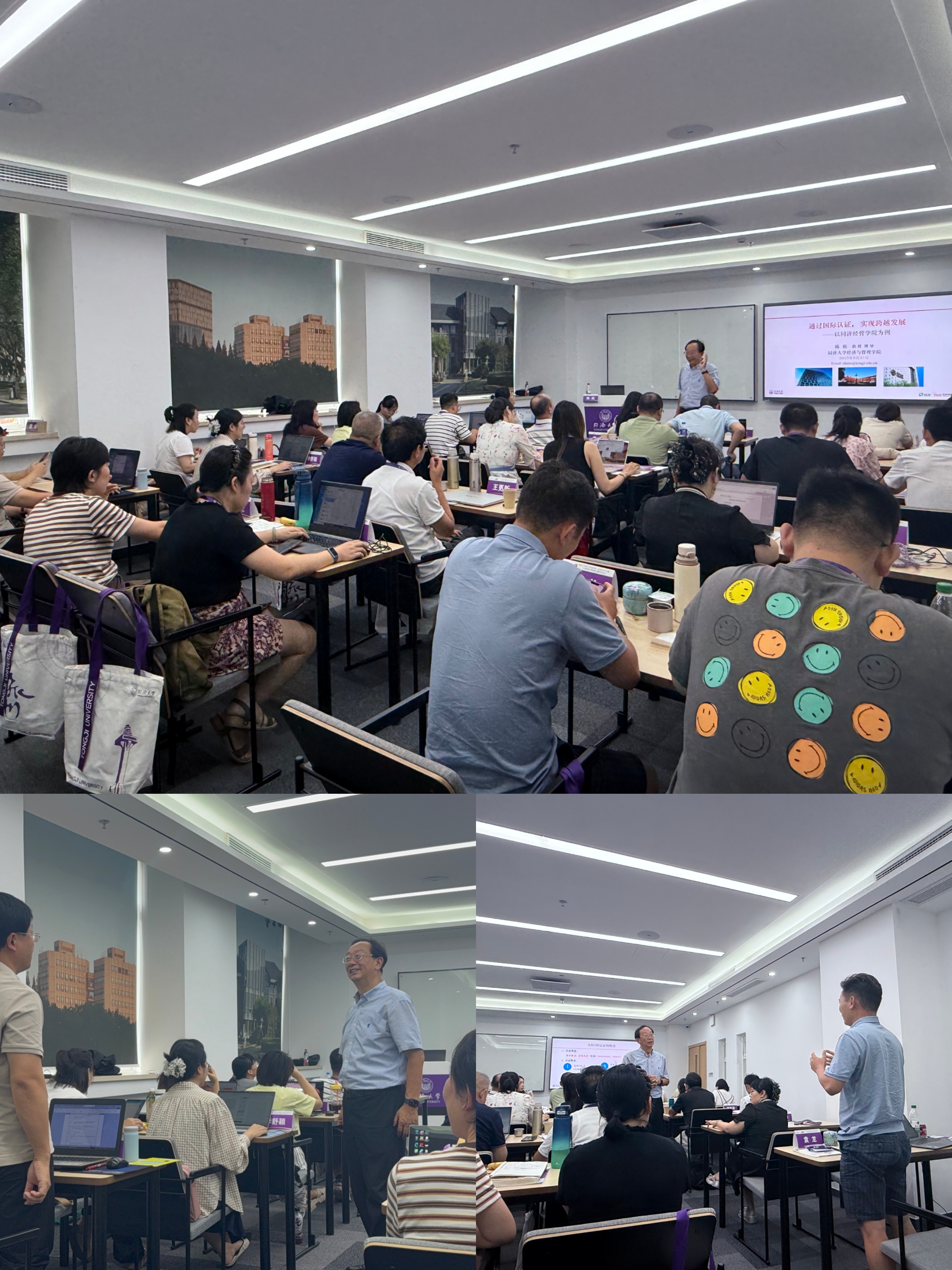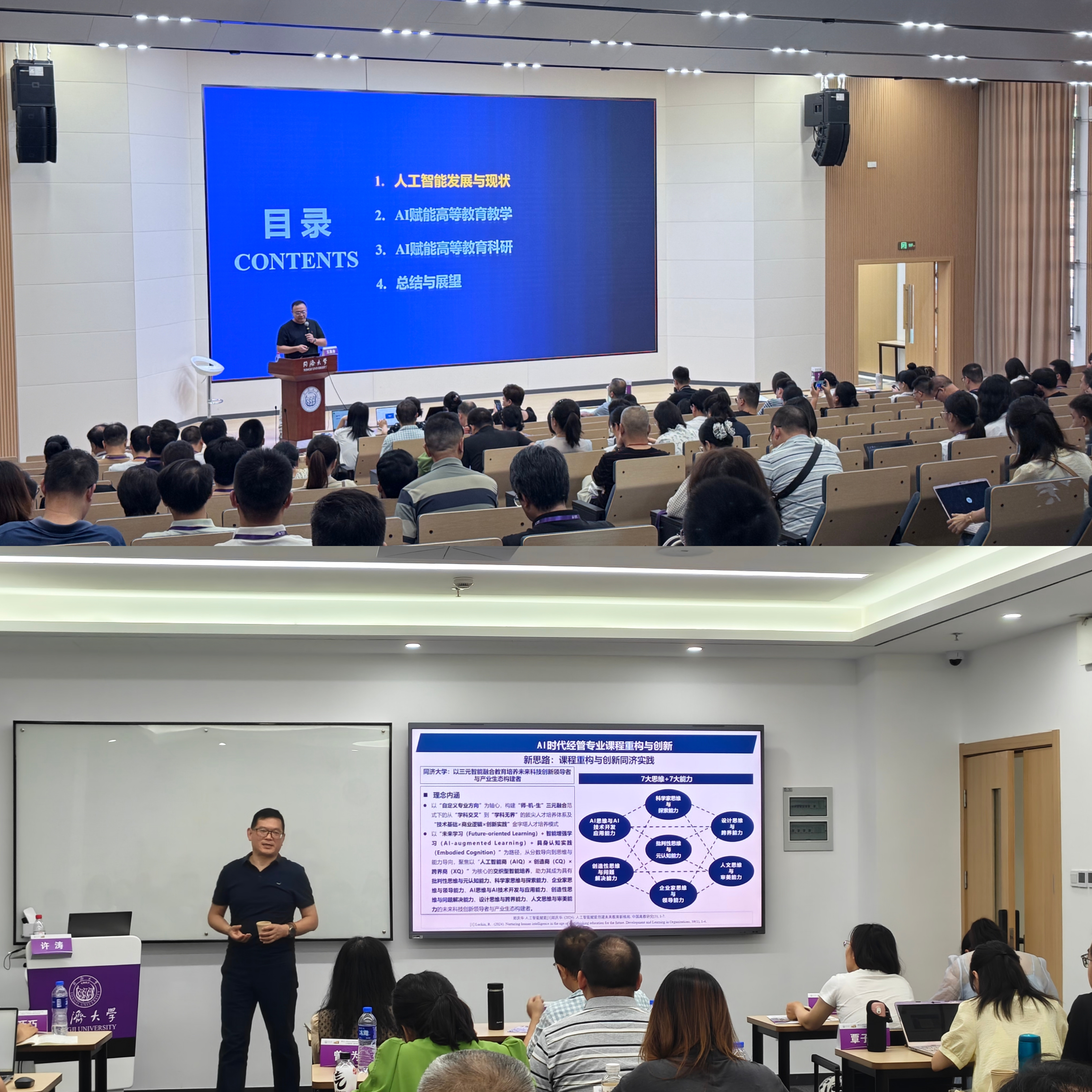22日,同济大学王昊奋研究员讲解“AI赋能高等教育发展新生态”,剖析AI重塑教育生态趋势;下午,同济大学创新创业学院许涛教授围绕“经管学院专业课程建设与发展”授课,助力优化专业课程体系。
