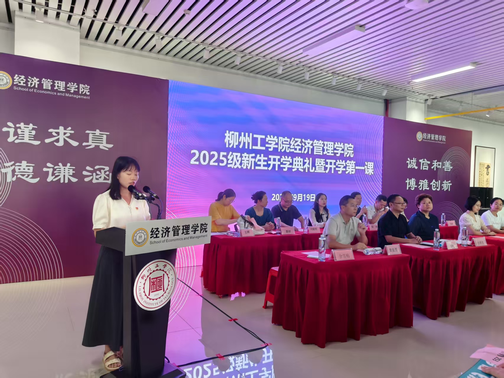 9月19日,经济管理学院2025级新生开学典礼暨师生见面会在北校区图书馆一楼隆重举行。学院领导、各教研室主任、教师代表、新生班主任、班助及全体2025级新生齐聚一堂,共同开启新学期的崭新篇章。典礼由学院专职辅导员、团委书记余雪梅主持。
