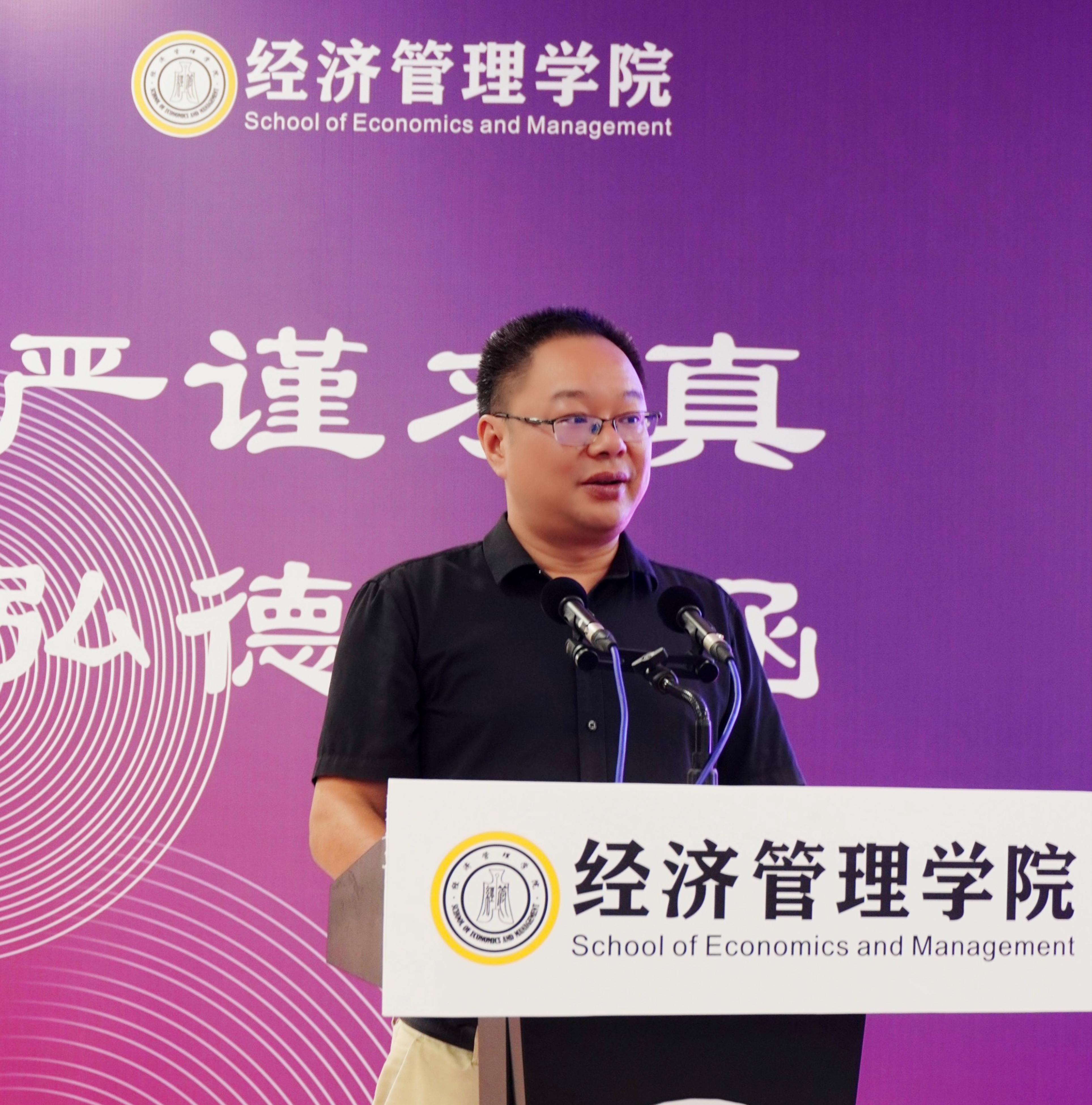 在开学典礼上,洪翠笙书记代表学院向2025级新生致以亲切问候,并立足全球科技革命与产业变革的时代背景,对新生提出三点殷切期望:一是以“根脉”为引,牢记建校23年凝练的“拼搏”“敢赢”精神,将个人理想融入国家发展大局;二是以“扎根”为基,做到立心(坚定理想信念)、立行(在实践中锤炼能力)、立德(坚守诚信底线);三是以“致远”为向,珍惜大学时光,用奋斗书写青春,成就“立业、立功、立言”的人生答卷。洪书记勉励同学们在经管学院这片沃土上“向下扎根、向上生长”,以实际行动诠释“经世济民”的使命担当。