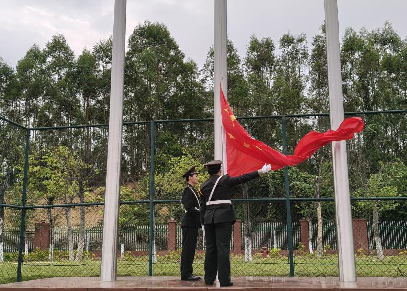 方阵入场完毕后,主持人介绍了出席嘉宾。在庄严的国歌声中,五星红旗冉冉升起,全体师生肃立行注目礼,爱国情怀与运动激情在此刻交融。