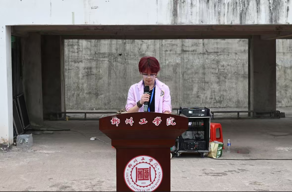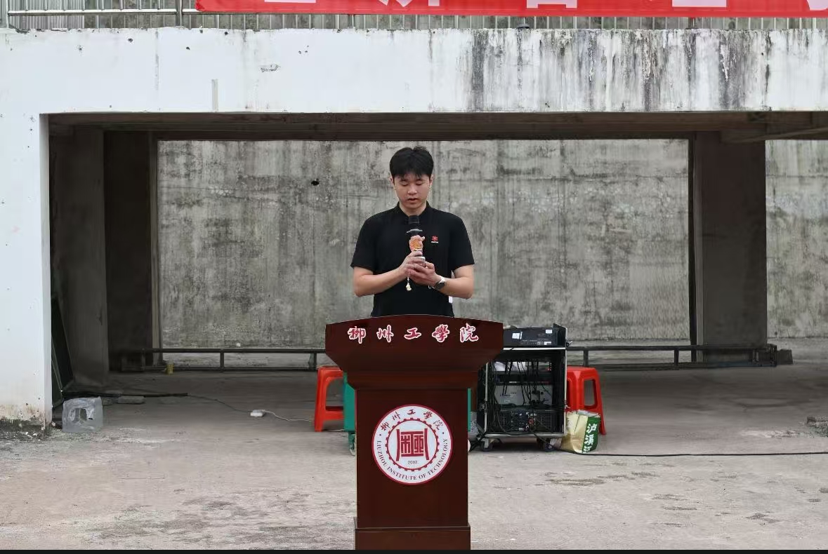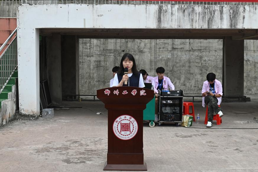团委书记余雪梅致辞,感谢工作人员的辛勤付出,并寄语学子享受竞技乐趣、收获成长感悟。最后,洪翠笙书记宣布:“柳州工学院经济管理学院2025级新生田径运动会正式开始!