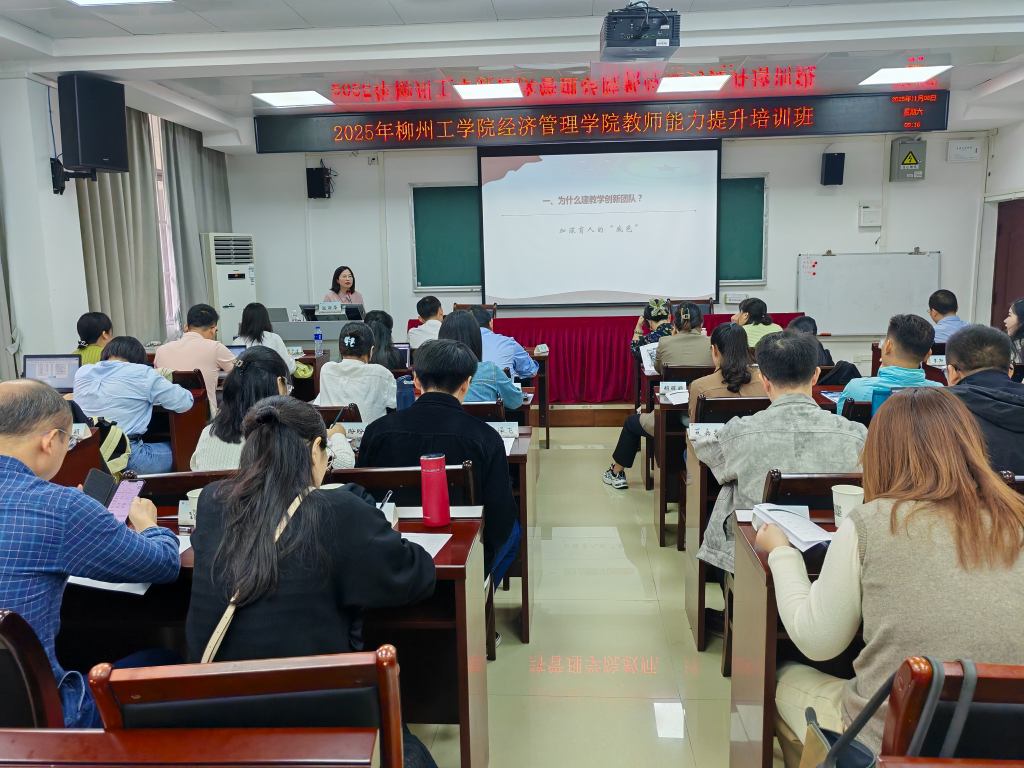 为深化高等教育改革,全面加强教师队伍建设,2025年11月7日至11日,经济管理学院组织40名教师,在副院长黄良芳的带领下,赴广西大学开展为期五天的教师能力提升专项培训。本次培训聚焦数字素养提升、教学模式创新、课程内涵建设等核心议题,为教师搭建了多元化的学习交流与实践提升平台。