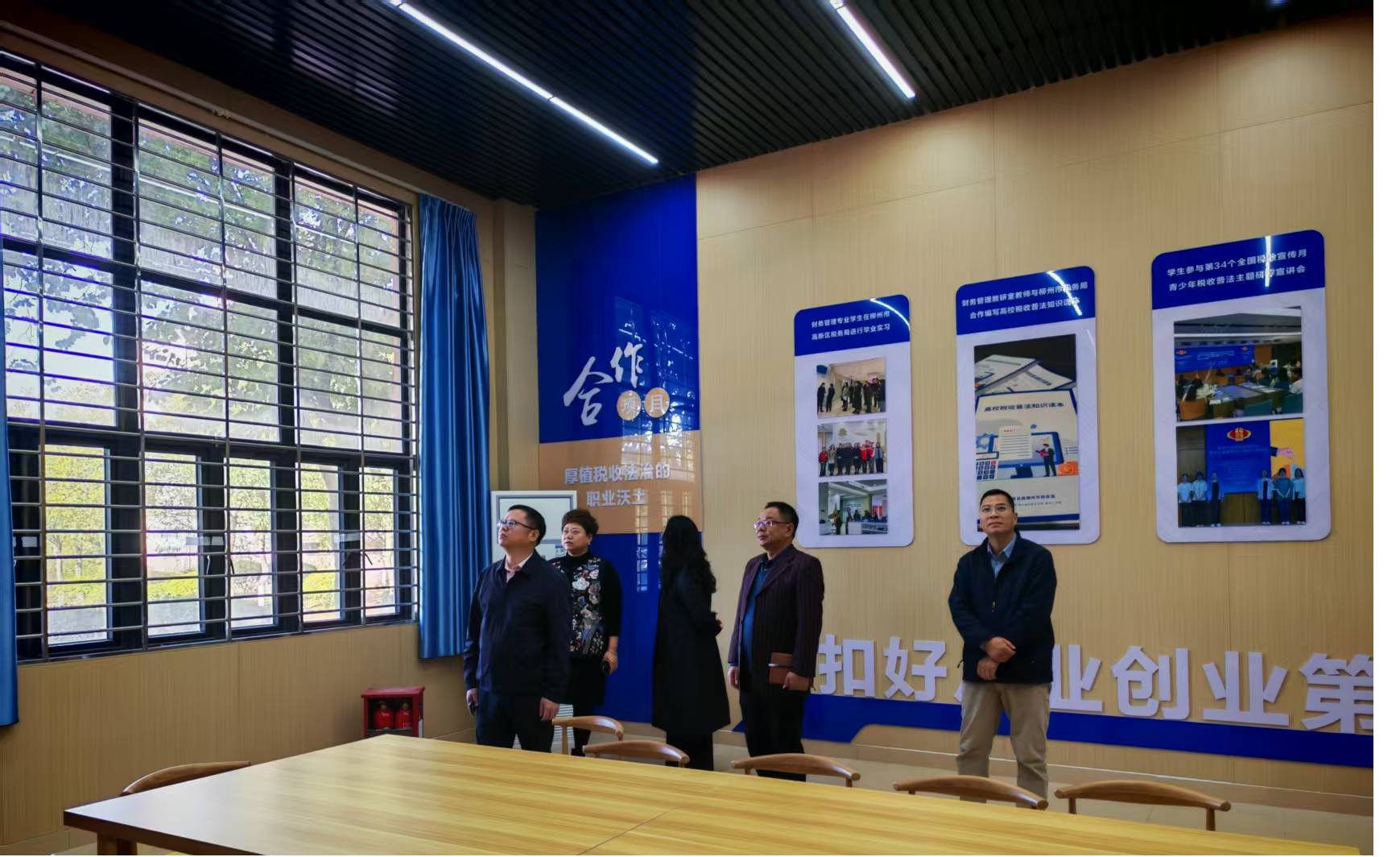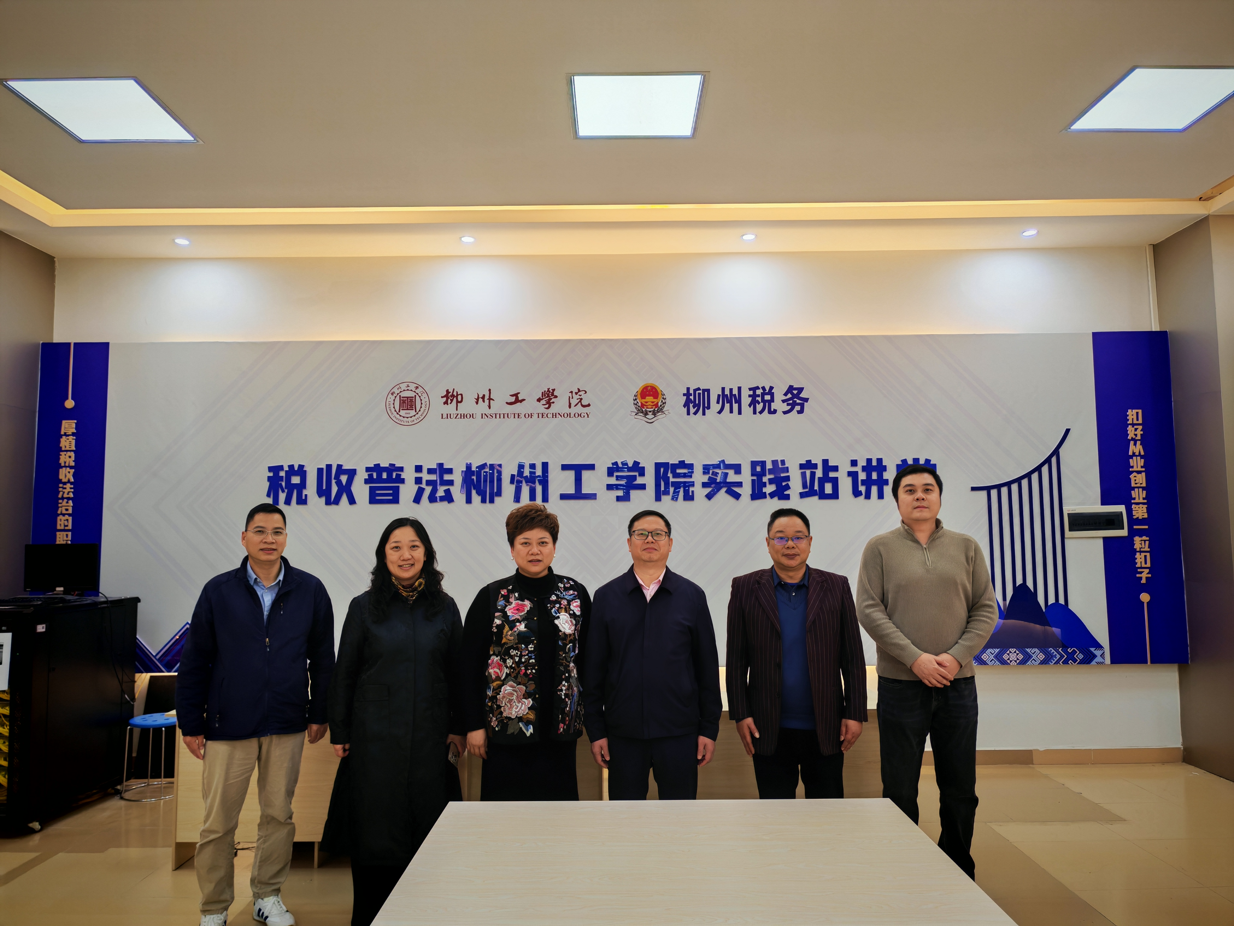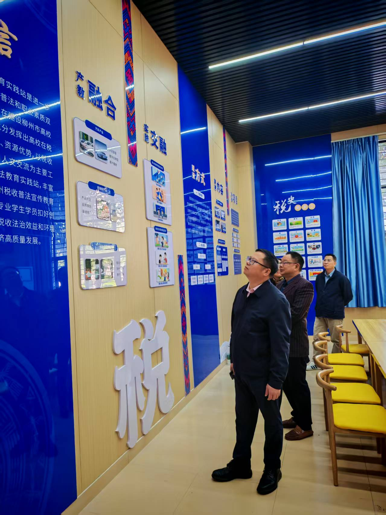 2025年11月26日下午,柳州市税务局副局长刘恒智、纳税服务中心王琳一行莅临柳州工学院,对柳州市高校税收普法教育实践站建设进展开展专项检查。柳州工学院经管学院院长李明、党总支书记洪翠笙、副院长黄良芳陪同检查,双方围绕校政协同育人展开深入交流。