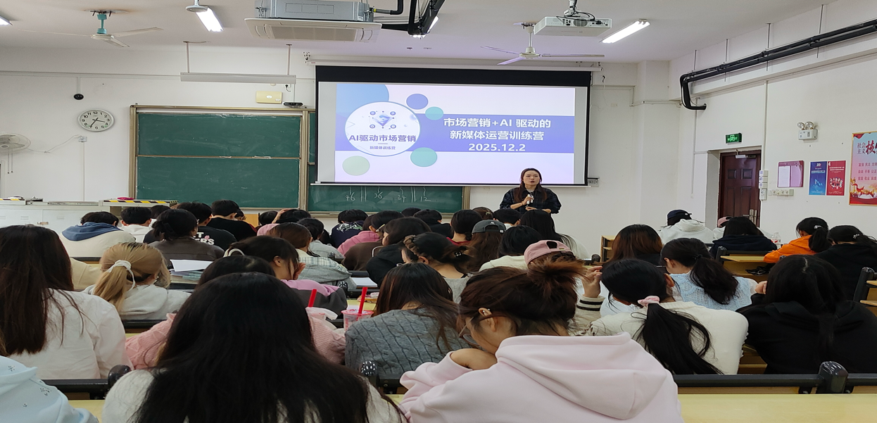 为顺应新媒体行业智能化转型趋势,提升学生实践应用能力,12月2日,经济管理学院市场营销专业在二教208教室举办“AI驱动的新媒体运营训练营”动员会。本次活动面向市场2023、2024级营销专业学生,由市场营销教研室副主任吴莹莹老师主持并讲解。