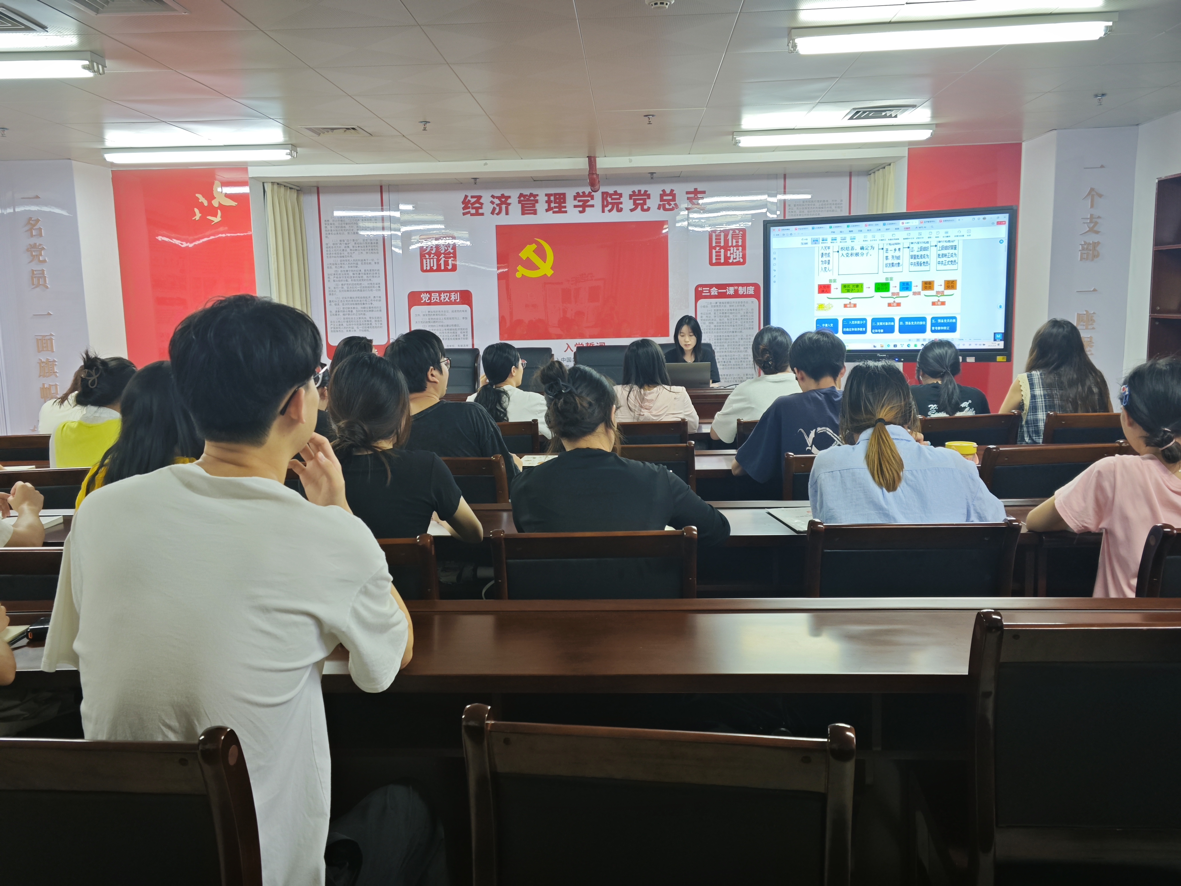 为筑牢党建工作根基,全面提升党建工作水平,确保本学期党员发展、转正以及毕业生党员相关工作有序推进,经济管理学院党总支于2025年5月8日举办本学期第二次党建业务培训会。学院专职组织员罗云露老师、党建办公室负责人钟玉金老师、党建办公室骨干成员以及各支部党建助理共同参与本次培训。