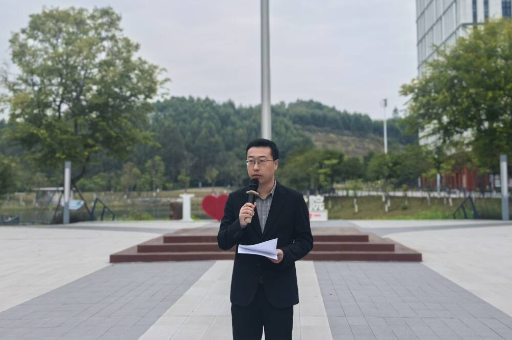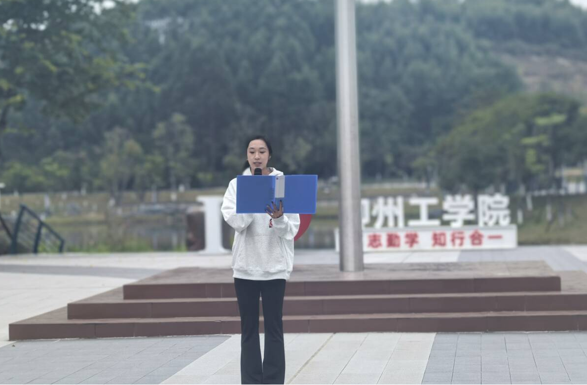 升旗仪式后,电气252班李潞作为新生代表发言。她分享了入学以来的成长与感悟,提出大学是“自主成长的练兵场”。另外,她还结合自己在校经历,提出“适应大学从接纳不同开始”。最后,她以国旗所承载的精神为引,发出三点倡议:“以开放之心适应节奏,以清醒之脑规划未来,以实干之力践行承诺”。