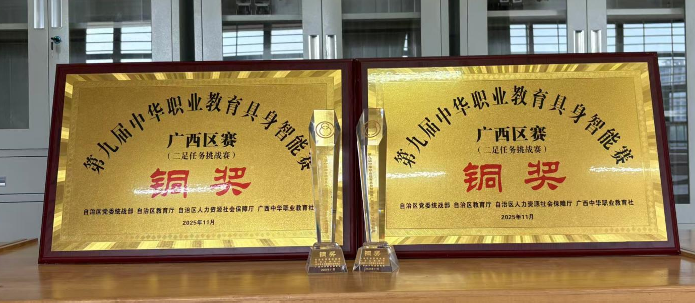 2025年11月23日至25日,第九届中华职业教育具身智能专项赛广西区赛在广西城市职业大学崇左校区举行。经过激烈角逐,信科学院两支参赛队伍凭借扎实的技术能力和出色的现场表现,最终荣获两项铜奖,充分展现了学院在智能机器人领域的教学成果和人才培养质量。
