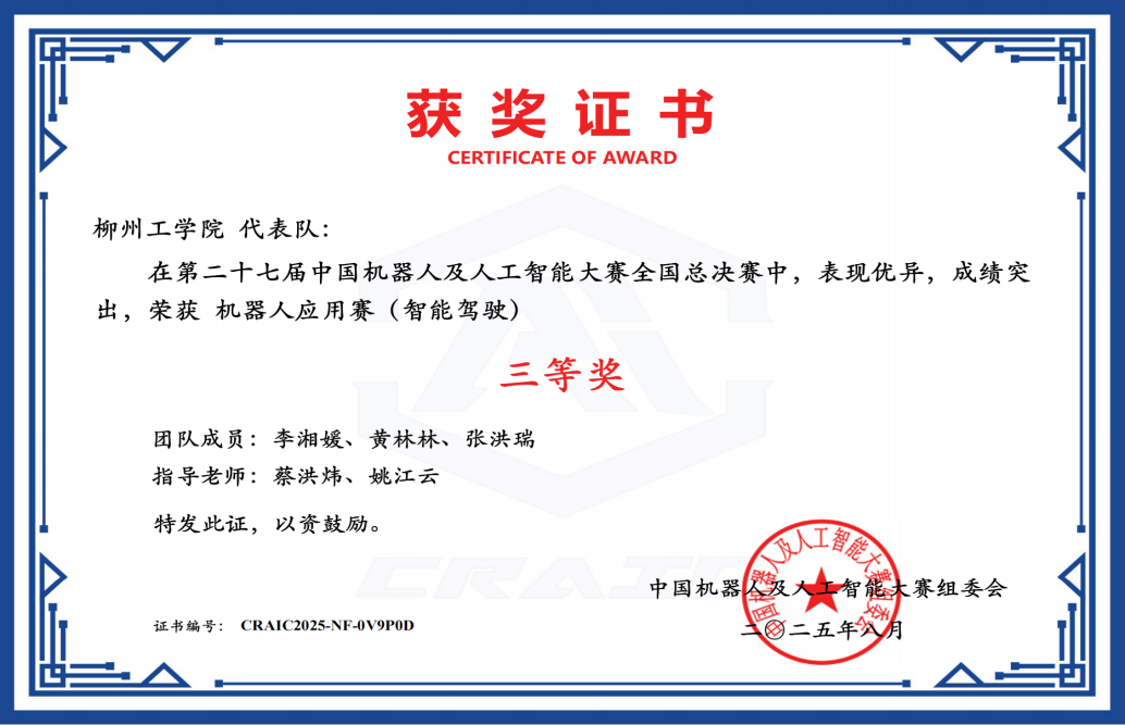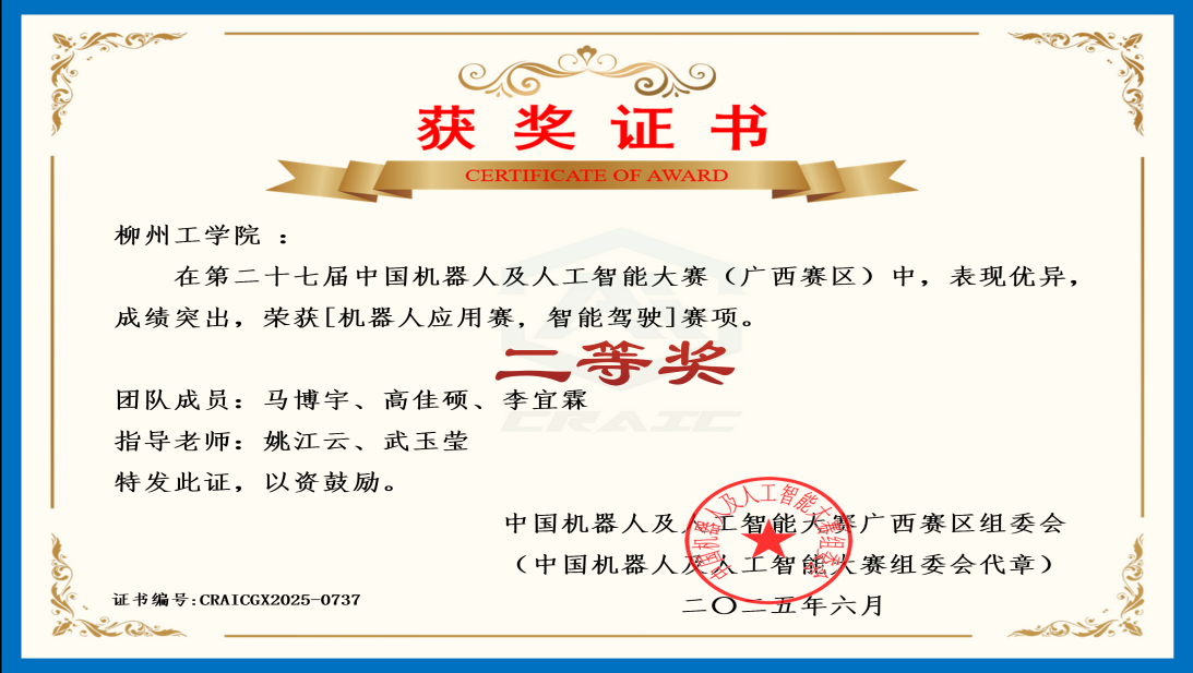 近期,第二十七届中国机器人及人工智能大赛全国总决赛圆满落幕。本届大赛吸引了全国众多高校参与,竞争激烈。在省级选拔中,信科学院5支参赛队伍表现优异,成功晋级全国总决赛,最终获得智能驾驶赛道全国三等奖一项、优秀奖一项,人工智能创新赛道和智能家电创新赛道秀奖各一项。