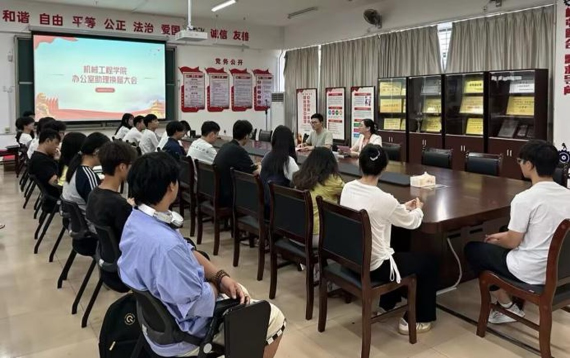 为保障学院办公室日常工作的平稳衔接与高效开展,进一步激发办公室助理团队的工作热情与责任感,9月12日,机械工程学院办公室助理换届大会在学院会议室圆满举行。本次大会特别邀请到聂秋红老师、姚通准老师出席,学院全体办公室助理共同参与,见证团队新老交替的重要时刻。