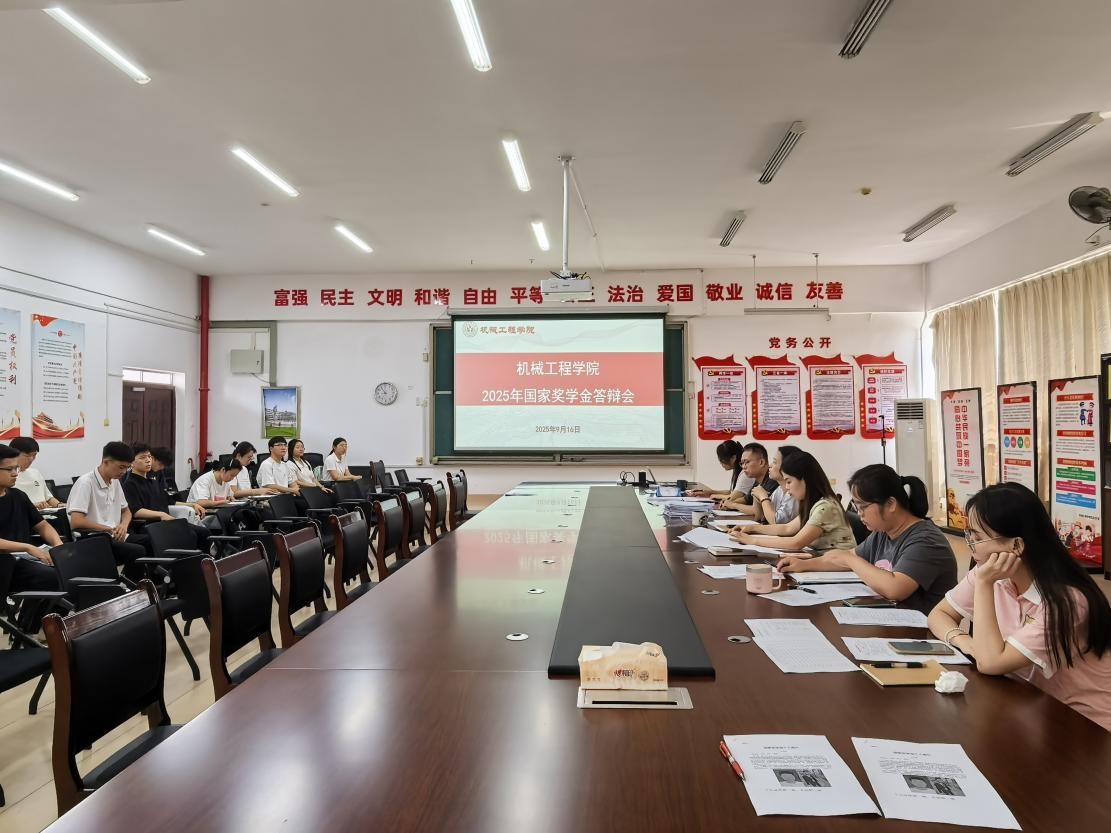 为公平、公正、公开选拔品学兼优、综合素质突出的2025年国家奖学金获得者,9月16日,机械工程学院顺利开展2025年国家奖学金答辩评审会。本次答辩评审会共有14名同学参与,机械工程学院评议领导小组8名成员代表参加评审,王丽书记亲临现场指导,答辩评审会由姚通准老师主持。