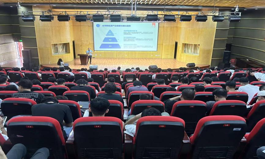 会议第一阶段以新能源技术知识讲座拉开序幕。教务处处长刘锋涛在致辞中强调:“此次特训班是学校深化校企合作、服务地方产业发展的重要举措,旨在通过‘校企合作’双向培养模式,打造既懂理论又精实践的复合型人才。”随后,柳州国轩电池有限公司班子成员、品质管理中心总监兼工程研究院副院长何永斌以《新能源产业发展路径探索》为题,结合企业实际案例,深入剖析了动力电池技术创新路径及行业人才需求方向,引发师生热烈讨论。