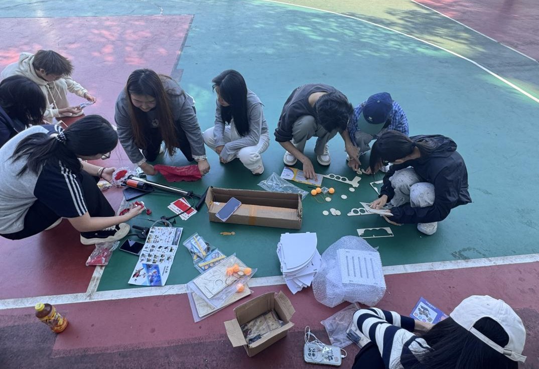 活动现场,各科技项目有序进行,四大项目兼具知识性与趣味性,实现了学用结合,引来了诸多学生的围观。水火箭项目融合了流体力学的知识,选手通过调整瓶身配比、水量控制的反复打磨,直观体会科学原理的应用价值;太阳能遥控车考验的是能源的高效利用,通过调整光伏组件角度,操控车辆完成绕桩、加速等动作;纸桥承重项目尽显“以柔克刚”的智慧,充分彰显结构力学魅力。乒乓球弹力枪项目中,选手自制的弹力枪巧用弹簧或气压原理,将弹性势能转化为动能击打目标。活动现场激烈且有趣,学生将所学知识转化为具体的实践操作,展示了知识的力量。