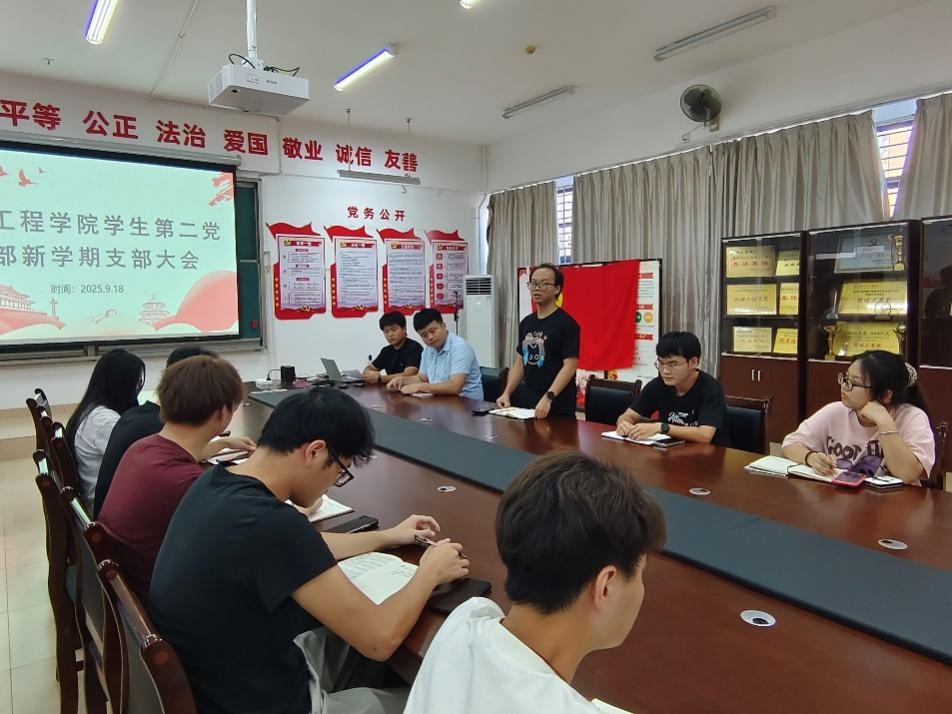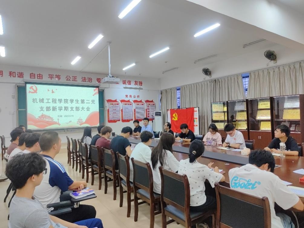 2025年9月18日下午17时,机械工程学院学生第二党支部于第一实训楼316会议室召开新学期支部大会暨纪念“九一八事变”主题学习活动。参加本次大会的有机械工程学院学生第二党支部书记郭凯,全体党员同志、入党积极分子。大会由党建助理朱旭同志主持。
