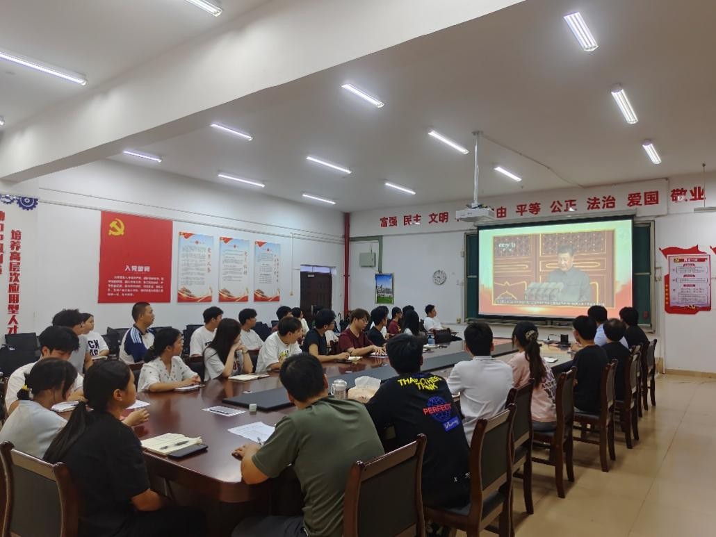 大会第三项:红色教育与思政学习。为传承红色基因、厚植爱国情怀,大会组织全体党员集中观看“9·18”历史教育视频。斑驳的史料、沉重的历史瞬间,让在场积极分子和党员同志深刻铭记国家蒙辱、人民受难的过往,进一步坚定了“以史为鉴、开创未来”的信念。随后,大会开展“同上一堂思政课”,聚焦“新时代青年党员的使命与担当”,观看“大学篇:大国担当”线上思政课,这场思政大课让大家从被动接受转变为主动思考,是对伟大抗战精神最好的传承。我们不仅要铭记历史的伤痛,更要汲取伟大抗战精神的力量,将伟大抗战精神转化为挺膺担当的实际行动,努力成长为有理想、敢担当、能吃苦、肯奋斗的新时代好青年,为实现中华民族伟大复兴贡献自己的力量。