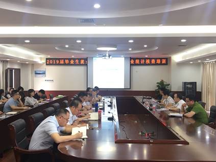 5月23日下午15:00,我院在科教楼18楼中型会议室组织召开了“2019届毕业生就业工作专题会议-就业统计核查培训会”,学院党委副书记.纪委书记何颖梅、学院党委副书记李辉、各系党总支书记、就业联系人、毕业班辅导员、招生就业中心全体人员参加了此次会议,会议由招生就业中心主任袁龙主持。
