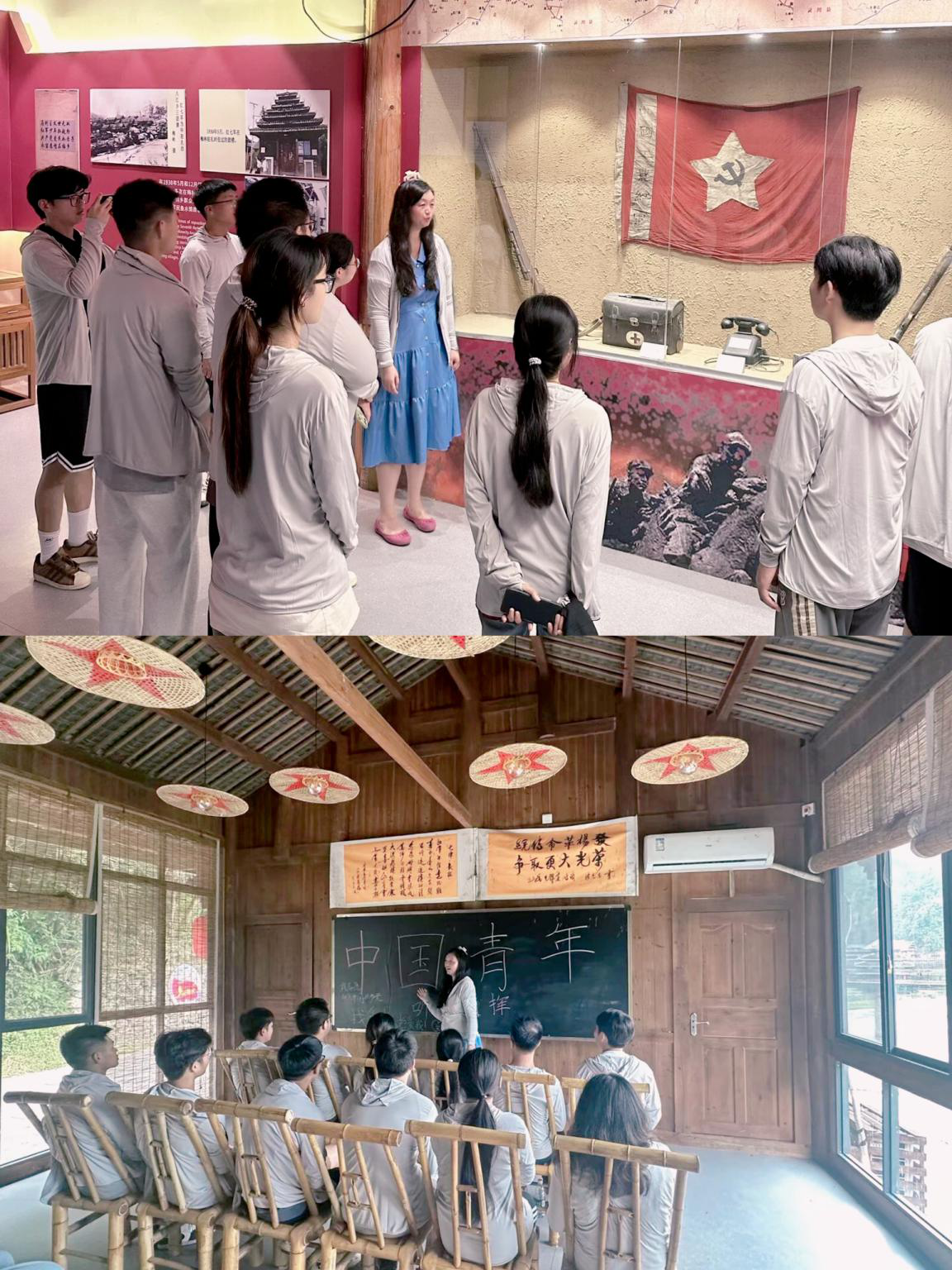 在三江剿匪纪念馆与革命烈士纪念碑前,彭曦老师为实践团带来了一堂别开生面的“行走的思政课”。她以馆藏革命文物为生动教材,通过“文物解读-精神提炼-时代传承”三个教学环节,将红色基因的传承融入乡村振兴的当代实践。在程阳八寨,她以侗族村寨的沧桑巨变为切入点,讲述了侗族人民在中国共产党领导下实现了“从解决温饱的艰苦奋斗,到文旅融合的创新发展”这一伟大历程,努力将铸牢中华共同体意识融入实践全过程。