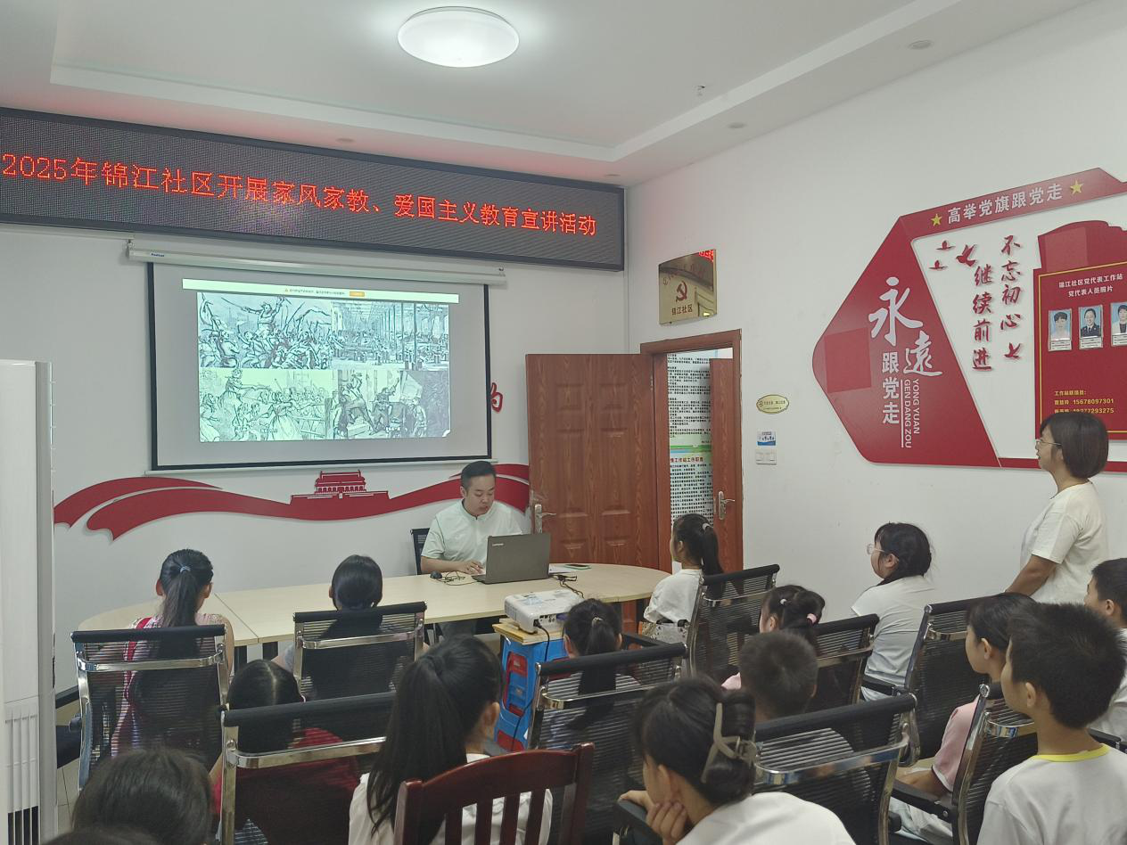 2025年8月1日,为持续推进思想引领力建设,发挥马克思主义学院理论宣讲优势,我院肖博文、李大鹏教师受邀前往柳州市柳北区锦绣街道锦江社区开展了一场主题为“爱国主义教育”暨家风教育理论宣讲活动,锦江社区相关工作人员及社区小学生共计50余人参加活动。